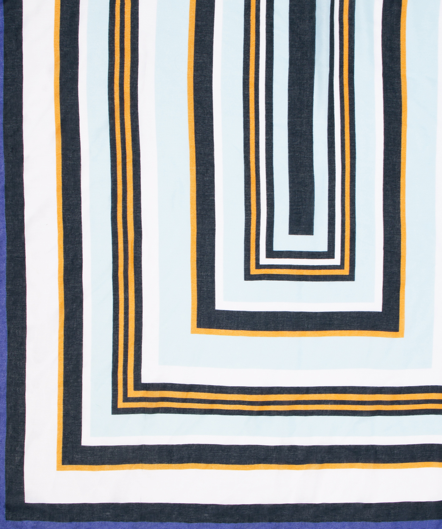 Легкий шарф из приятной на ощупь ткани. Контрастный геометрический принт, декор: кисточки. Шарф прекрасно подойдет к весенне-осеннему гардеробу и подчеркнет деловой стиль в одежде.