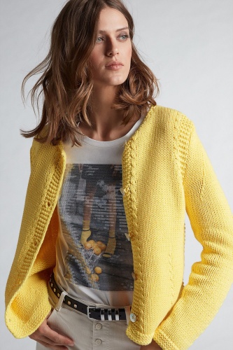 Яркий кардиган непременно обратит на себя внимание! Прямой покрой, длинные рукава, застежка на пуговицах. Крупная вязка с косами. Приятный к телу материал из смеси хлопка и полиакрила. Этот кардиган - модная теплая вещь, необходимая в любом гардеробе.
