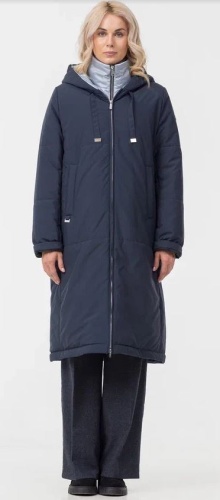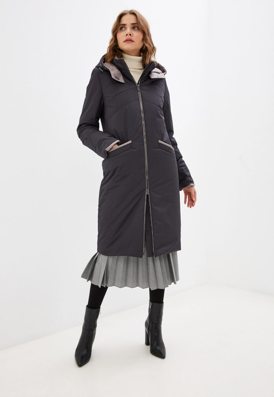 Темно-серое длинное пальто с капюшоном, застёгивающееся на молнию. Накладные карманы и декоративная светлая окантовка на них и капюшоне добавляют изделию особый шарм. Высококачественный материал обеспечивает комфорт и тепло, делая этот элемент гардероба идеальным выбором для холодной погоды.