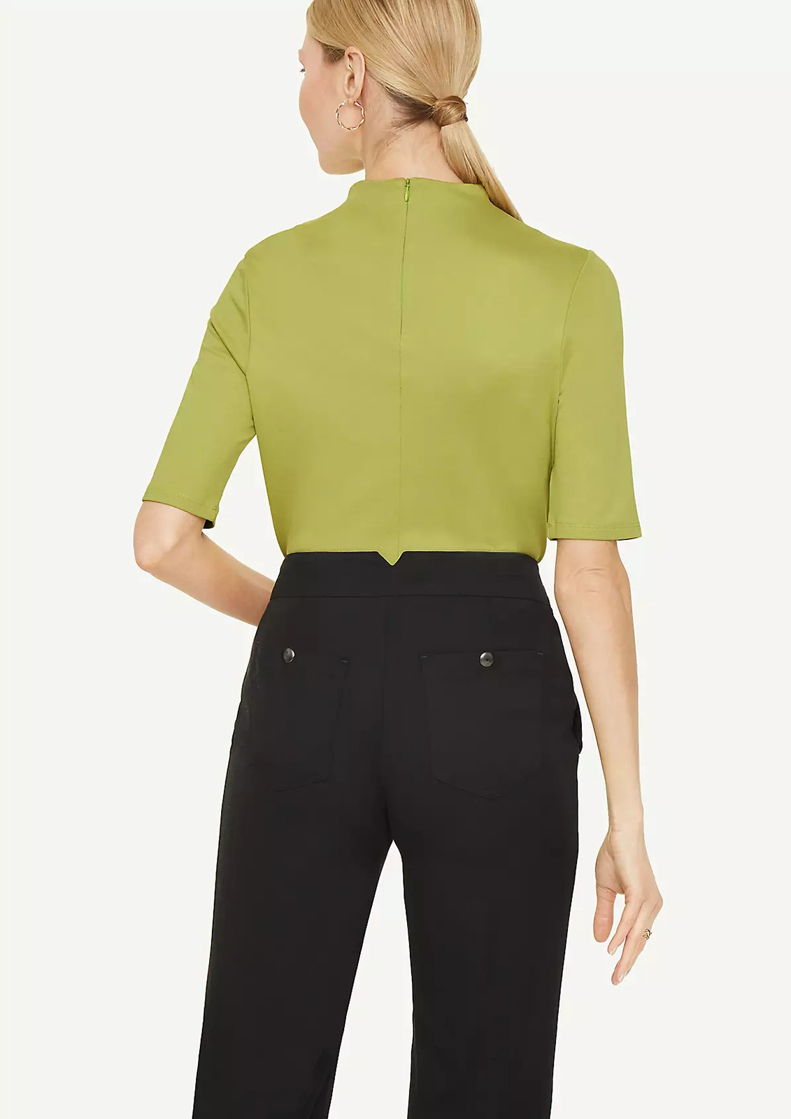 Однотонная блузка прямого кроя. Длина рукава до сгиба локтя, воротник стойка. Блуза может выступать самостоятельным верхом или надеваться под блейзер или жакет.
