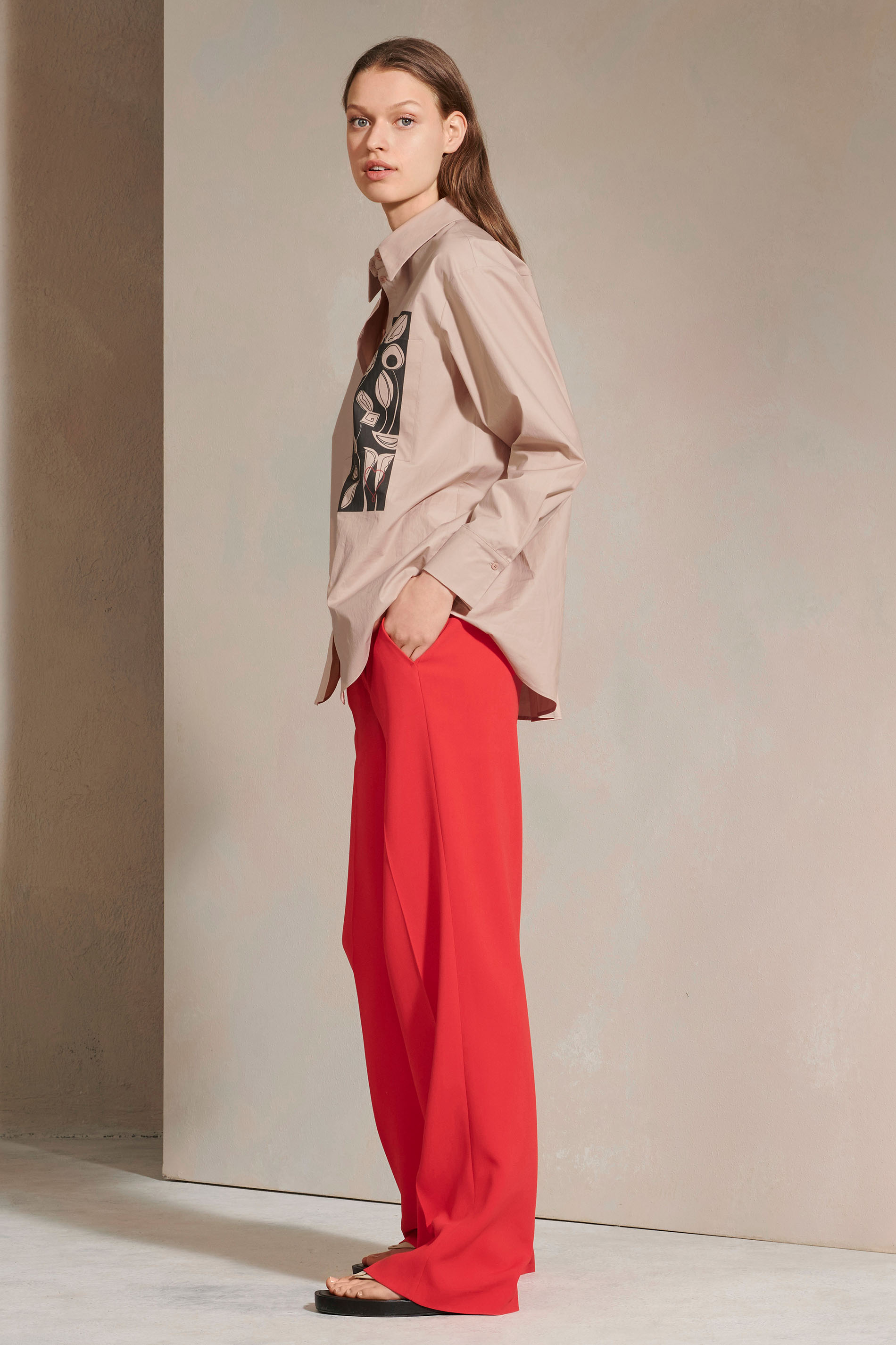 Hемецкий бренд. На сайте указаны Российские размеры. Классическая рубашка из элегантного эластичного поплина с планкой со сплошной пуговицей, закругленным низом и крупной складкой сзади. Крупный мотивный принт на нагрудном кармане расставляет акценты.