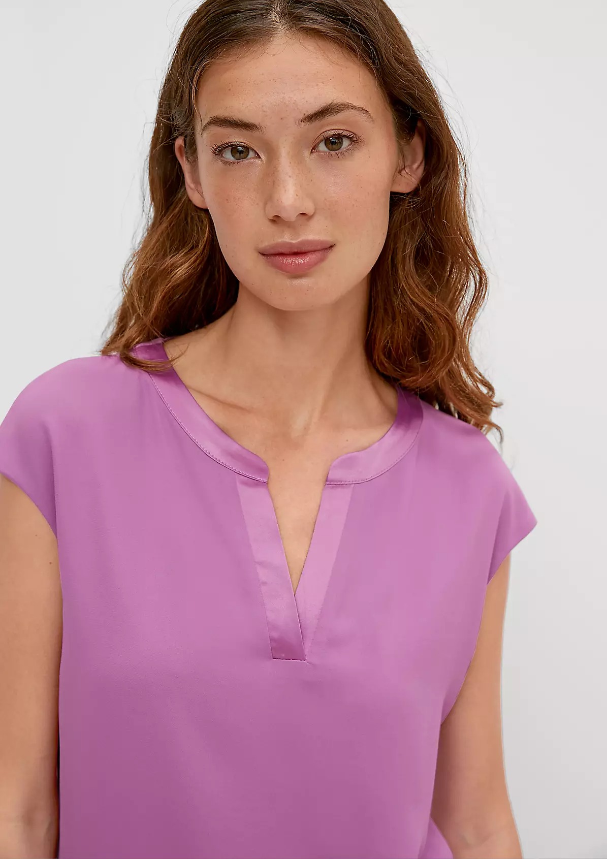 На сайте указаны российские размеры. Тонкая однотонная футболка из вискозы. Длина спины: 64 см в размере 42.