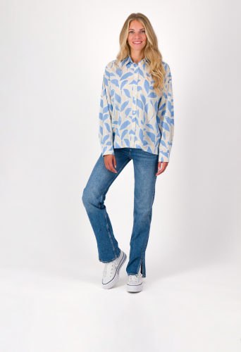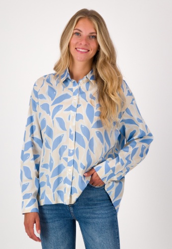 На сайте указаны российские размеры. Блуза-рубашка с выразительным сплошным принтом в ботаническом стиле — must-have сезона. Стильный принт придает блузке-рубашке оверсайз креативный вид. Обработка задней складки без кокетки также обеспечивает удобную полноту и непринужденный вид. Длина по спинке: 68 см. Рост модели: 177 см.