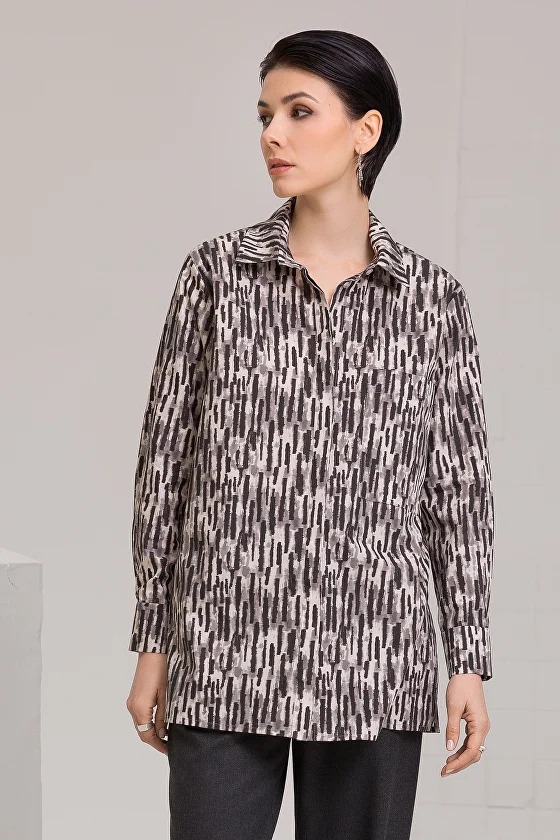 Блуза-рубашка из французского хлопка с принтом туманный граттаж.