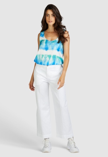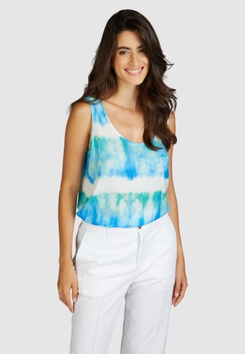 Блуза с круглым вырезом и принтом батик из небрежно драпированного японского атласа придает изысканный и свежий вид. Вырезы отделаны окантовкой. Изогнутый подол дополнен боковыми разрезами для еще большего комфорта и струящегося стиля.