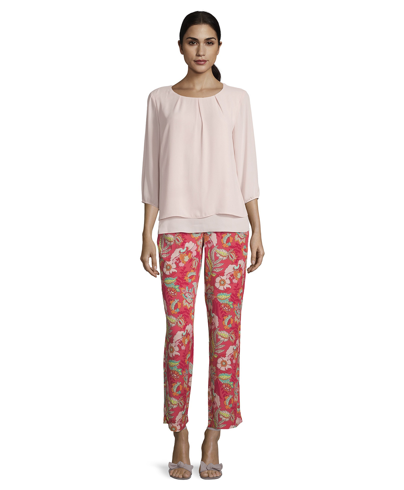 Свобода в тренде! Летящая блуза. Оригинальный крой этой двухслойной модели создает красивые драпировки. Круглый вырез горловины, рукава 3/4. Эта блуза создает романтический образ как с юбкой, так и с брюками.