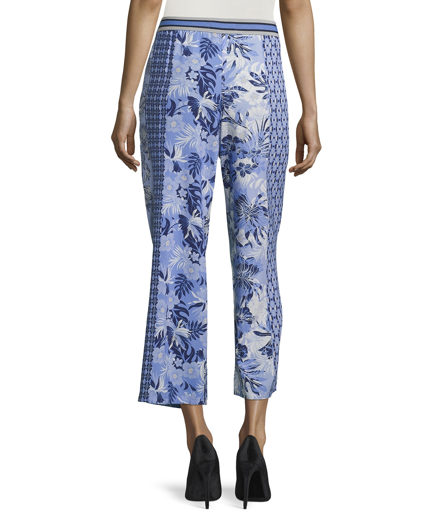 Широкие брюки в моде! Брюки средней посадки с эластиным поясом. Укороченная длина позволяет подчеркнуть модную обувь. Принт с сочетанием цветочных и графических мотивов обращает на себя внимание. Вискозный материал приятен к телу и обеспечивает максимальный комфорт. В сочетании с однотонной футболкой или блузкой эти брюки создают яркий современный образ.
