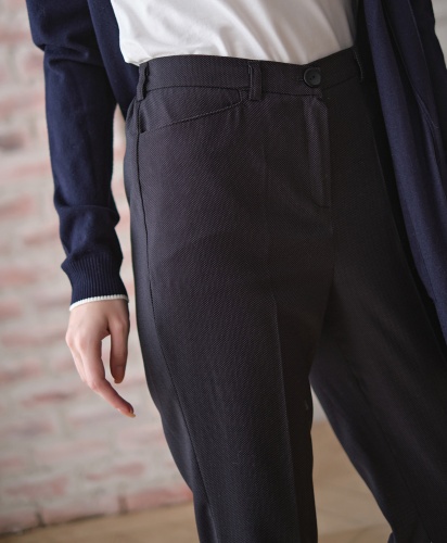 Классические брюки прямого кроя - базовая модель, предполагающая множество различных сочетаний. Удобная средняя посадка, застежка-молния спереди, карманы спереди. Стрелки визуально увеличивают рост. Интересный принт разбавляет классический образ.