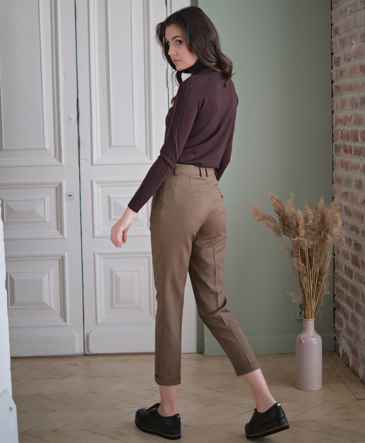 Брюки трендовой расцветки станут элементом капсульного гардероба, предполагают множество различных сочетаний. Длина до щиколотки, стрелки визуально увеличивают рост. Комфортная средняя посадка, замок-молния спереди, карманы спереди и один врезной карман с листочкой сзади.