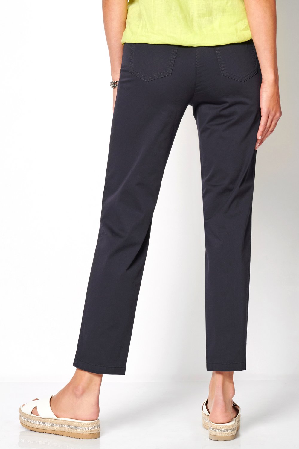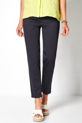 Укороченные однотонные брюки идеально подходят для поддержания делового стиля в теплую и жаркую погоду. Прекрасно сочетаются с блузой. А в комплекте с футболкой станут частью повседневного образа. Эластичный пояс обеспечивает комфортную посадку, а состав из хлопковой смеси позволяет телу дышать. Передние прорезные и накладные задние карманы.