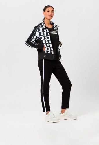На сайте указаны российские размеры. Спортивные брюки с эластичным поясом с пуговицей, потайной молнией и боковыми карманами. Крой создает красивый силуэт. Контрастные полоски по бокам расставляют модные акценты.