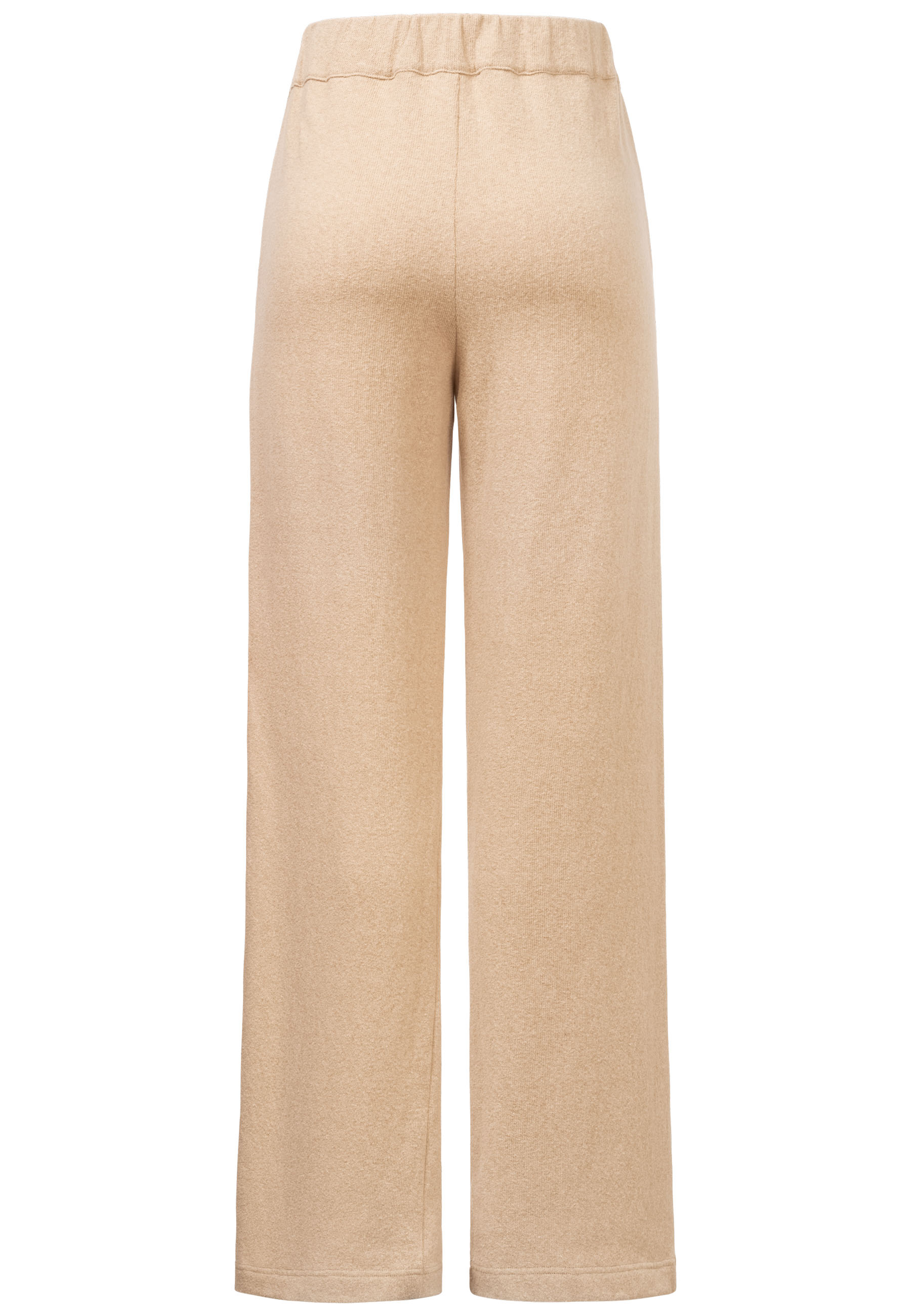 На сайте указаны российские размеры. Супермягкие брюки тонкой вязки с завязками. Спереди есть два практичных кармана, а завязки и широкий эластичный пояс обеспечивают удобство ношения. Благодаря прямому крою и незамысловатому однотонному цвету брюки универсальны, подчеркивая фигуру. Рост модели 177 см Измерения для 44 размера: Талия: 80 см Бедра: 106 см Длина штанины по внутренней стороне: 78 см.