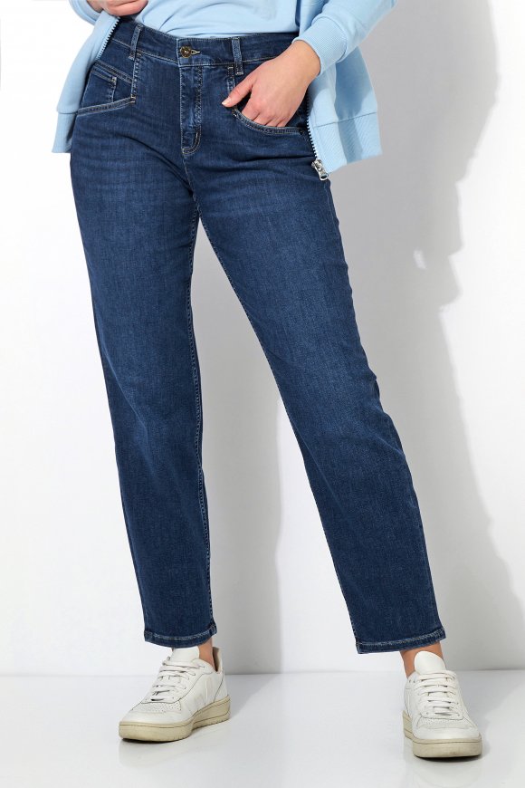 На сайте указаны российские размеры. Прямые джинсы средней посадки с изысканным решением карманов, средней высоты по поясу и длиной до щиколотки. Рост модели 178 см.