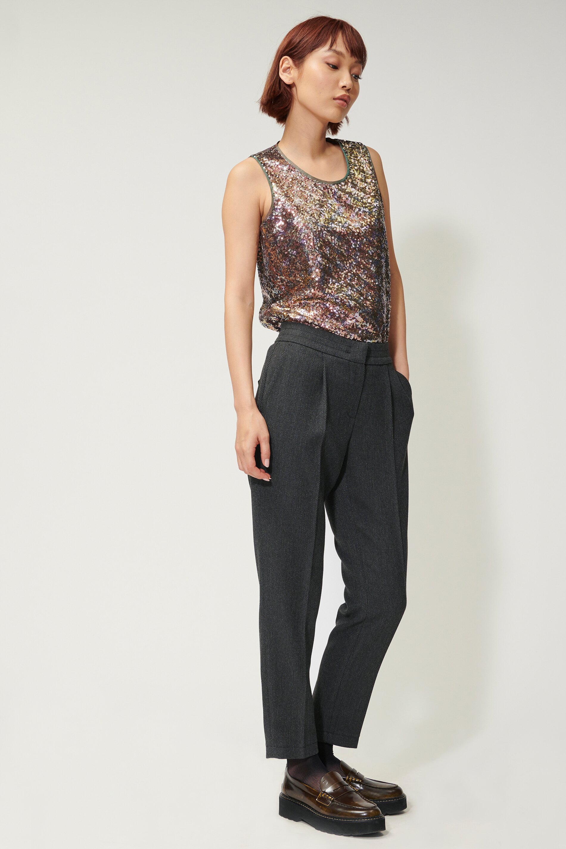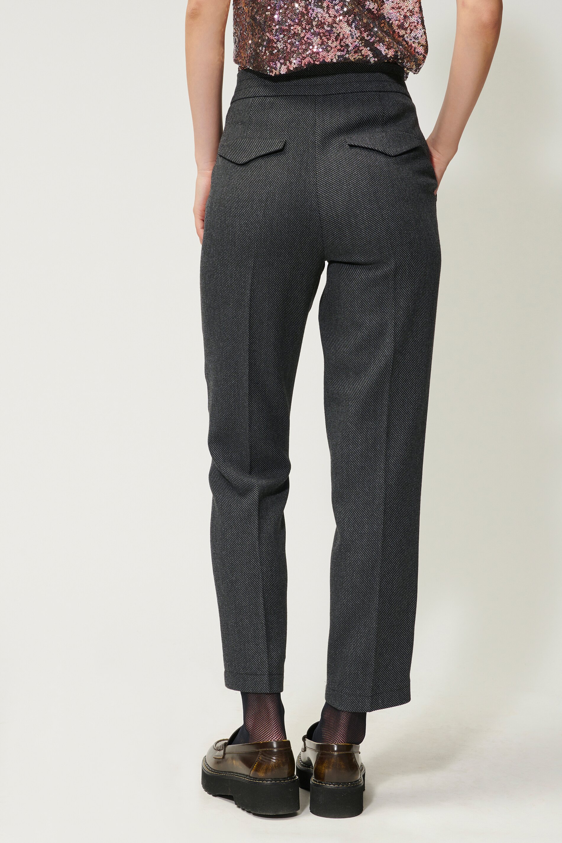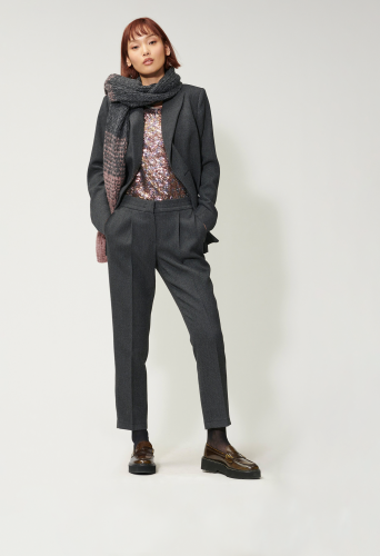 Брюки в стиле Lounge из тонкотканого двухцветного габардина. Складки на талии и складки на штанинах завершают дизайн.