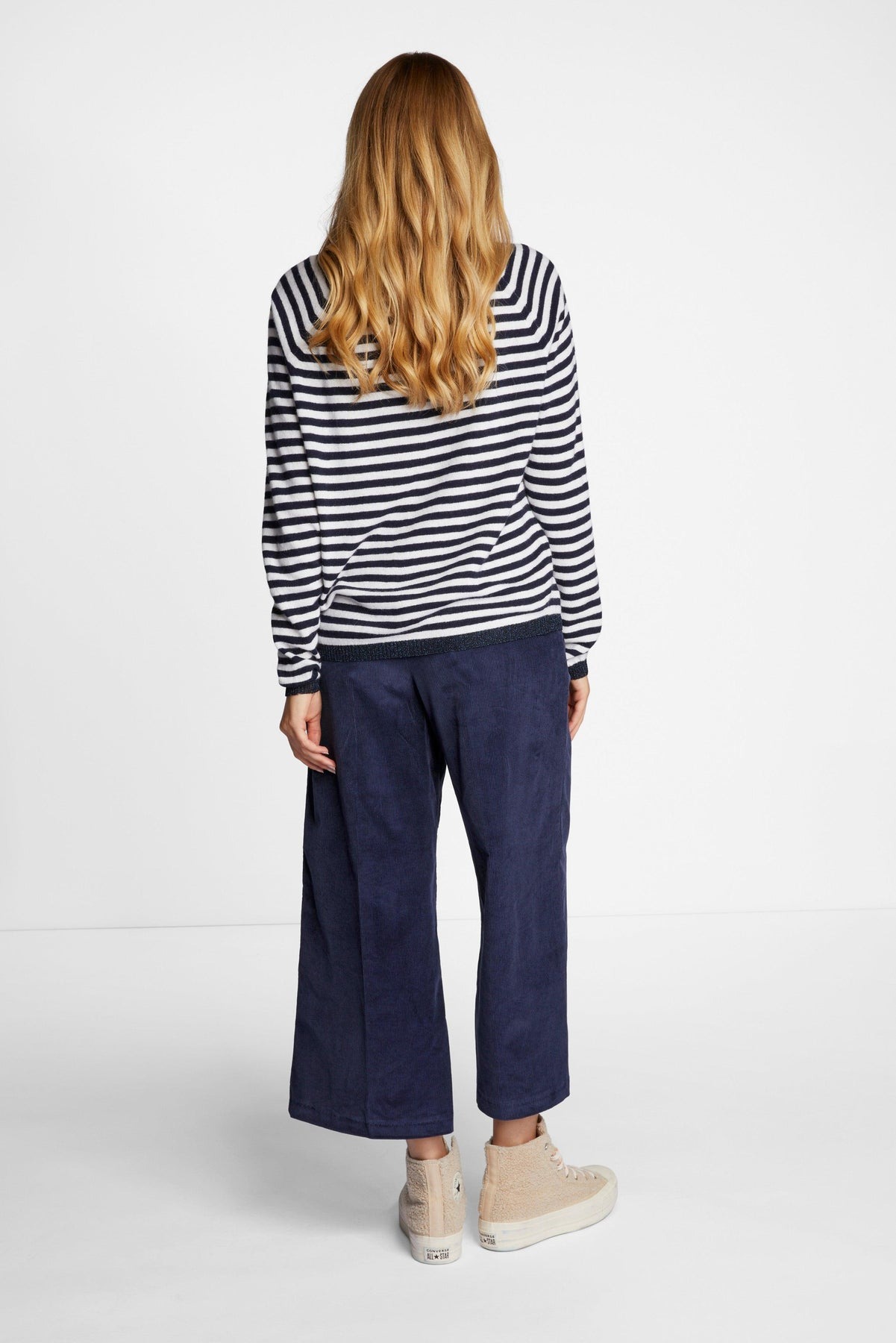 Вельветовые брюки-кюлоты изготовлены из смеси мягкого материала с добавлением хлопка и стрейча. Эластичный пояс подчеркивает комфорт при ношении. Длина для размера 42: 60 см.