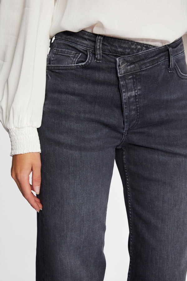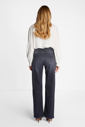 Джинсы оснащены диагональной молнией и V-образным поясом. Они также впечатляют сочетанием материалов с органическим хлопком. Широкая штанина удобна в ношении. Длина для размера 42: 82 см.