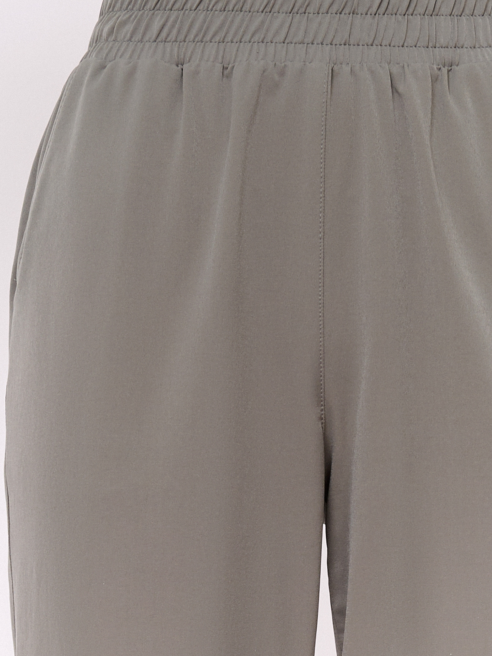 Застежка резинка, без рисунка, карманы косые, крой брючин зауженный, посадка средняя, эластичные вставки по низу брючин. Длина брючин: 72 см.