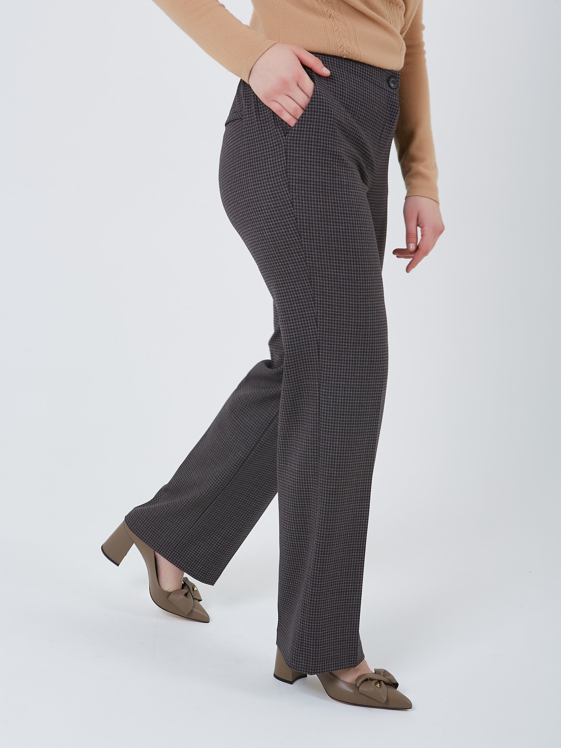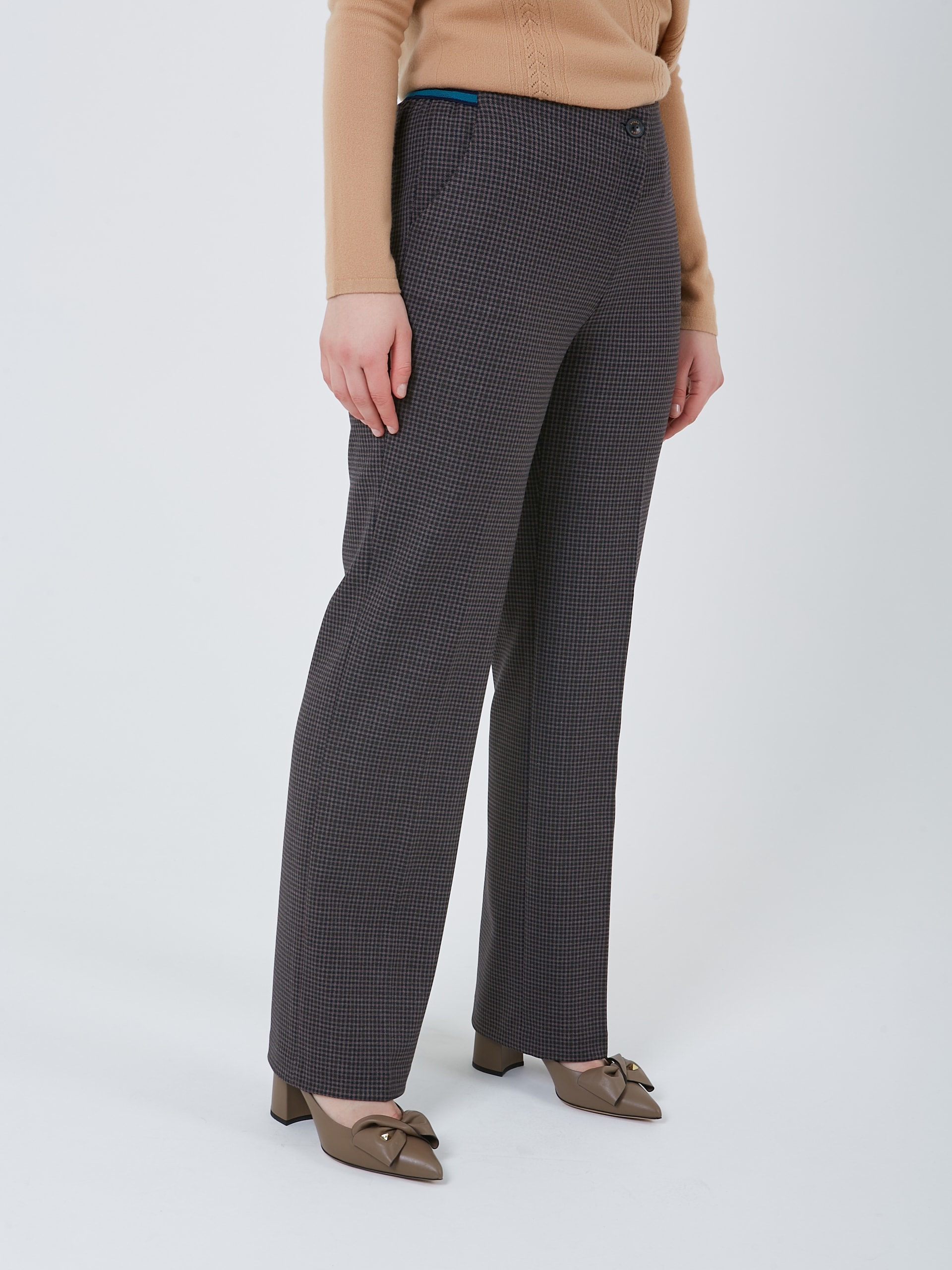 Классические брюки полной длины в деликатную клетку. Яркий акцент - резинка по задней части пояса. Коллекция Осень-Зима 2024-2025. Капсула "Крадущийся тигр, затаившийся дракон".