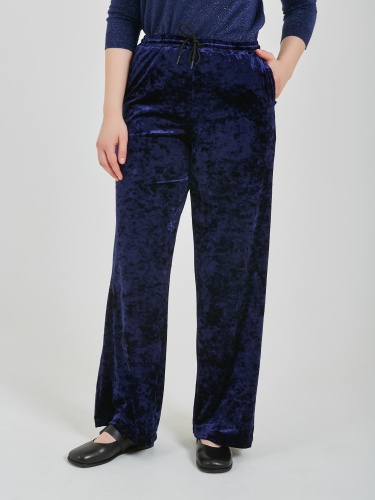 Чёрные и тёмно-синие брюки палаццо из бархата - практичный вариант для прогулки или офисного стиля. Осень-Зима'25/26. Капсула "Лиловый шар"