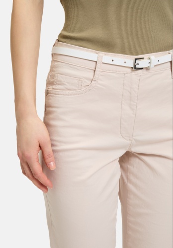 Летние брюки быстро станут фаворитами вашего гардероба! Благодаря облегающему крою и средней посадке они создают элегантный силуэт и обеспечивают исключительный комфорт. Простой, незамысловатый дизайн и практичный пояс придают им современный вид, а застёжка на пуговицы и молнию, а также классический дизайн с пятью карманами гарантируют функциональность. Универсальная базовая модель, идеально подходящая для летних образов!