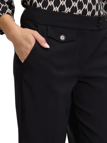 Эти черные брюки с высокой посадкой сочетают в себе современный стиль и максимальный комфорт. Прямой крой с легким расклешением книзу создает эффект стройности и визуально удлиняет ноги. Универсальная расцветка позволяет легко интегрировать их в любой гардероб, создавая как повседневные, так и более формальные образы.