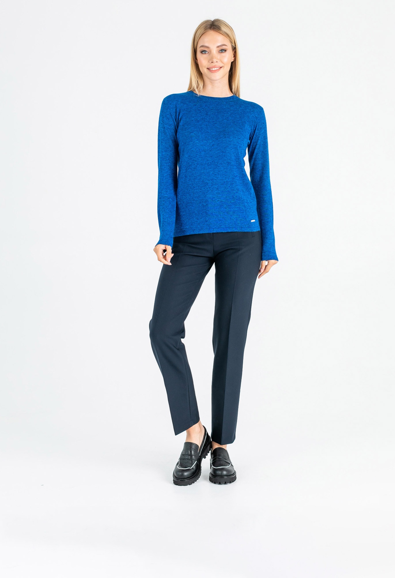 На сайте указан российские размеры. Ткань: 54% полиэстер, 20% акрил, 20% нейлон, 6% шерсть. Крой: гладкий трикотажный джемпер приталенного силуэта. Модель с круглым вырезом – идеальный вариант для повседневной носки, занятий спортом или создания рабочего образа. Тонкий, легкий и при этом очень теплый джемпер подчеркивает все достоинства фигуры. Представлен в трех актуальных оттенках – насыщенном синем, ярком красном и спокойном бежевом. Отделка: украшен фирменным металлическим шильдиком. С коллекцией брюк и юбок для создания полноценного образа можно познакомиться в соответствующих разделах нашего сайта. Рост модели - 177 см