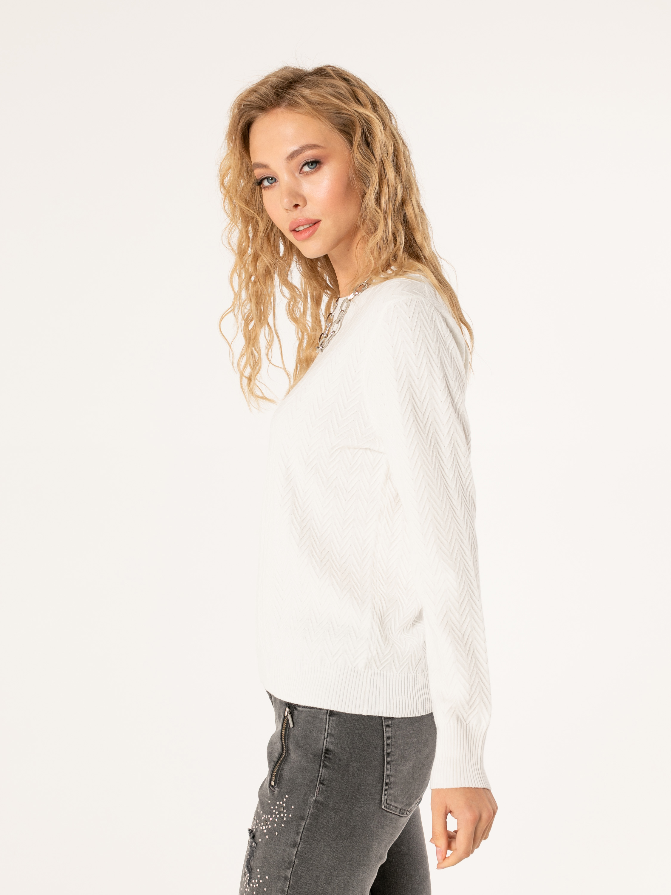 На сайте указаны российские размеры. Ткань: 55% вискоза, 45% хлопок+нейлон Крой: базовый джемпер прямого силуэта средней длины. Модель с удлиненными рукавами и круглым воротом – вечная классика, которую так легко вписать в повседневный гардероб. Джемпер подчеркивает все достоинства, в его составе хлопок и вискоза, которые дарят мягкое тепло и уют. Прямые свободные рукава обеспечивают комфорт и не сковывают движение. Отделка: получайте удовольствие каждый раз, когда проводите рукой по приятному рельефу «елочке», которая добавляет романтичности всему образу. Сочетайте с джинсами, брюками ярких и приглушенных оттенков.
