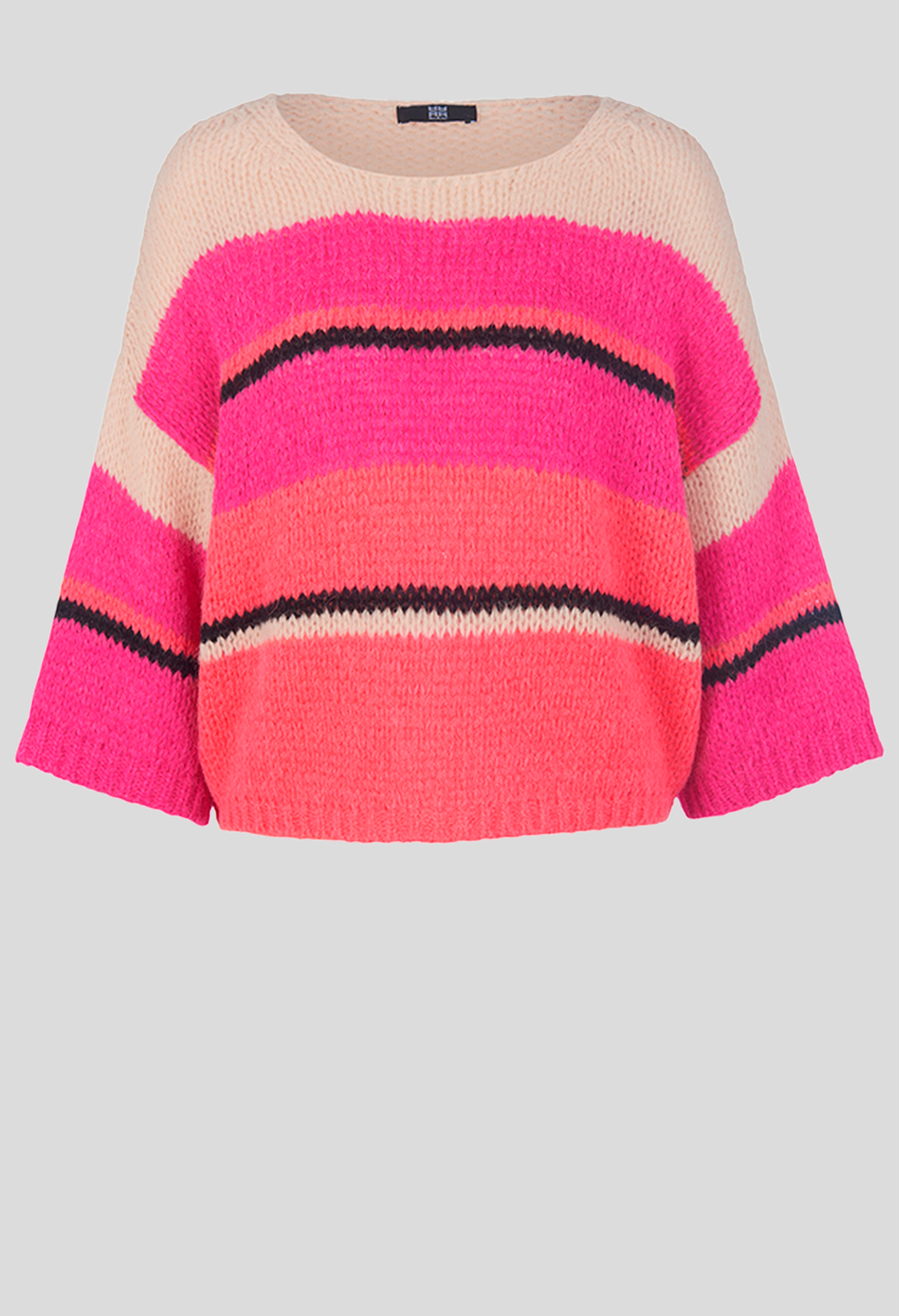 Повседневный трикотаж для прохладных дней. Свободный свитер с круглым вырезом модной расцветки вносит разнообразие в простые фасоны. Мягкое, элегантное сочетание альпаки, шерсти и полиамида обеспечивает удобную посадку и приятный эффект.