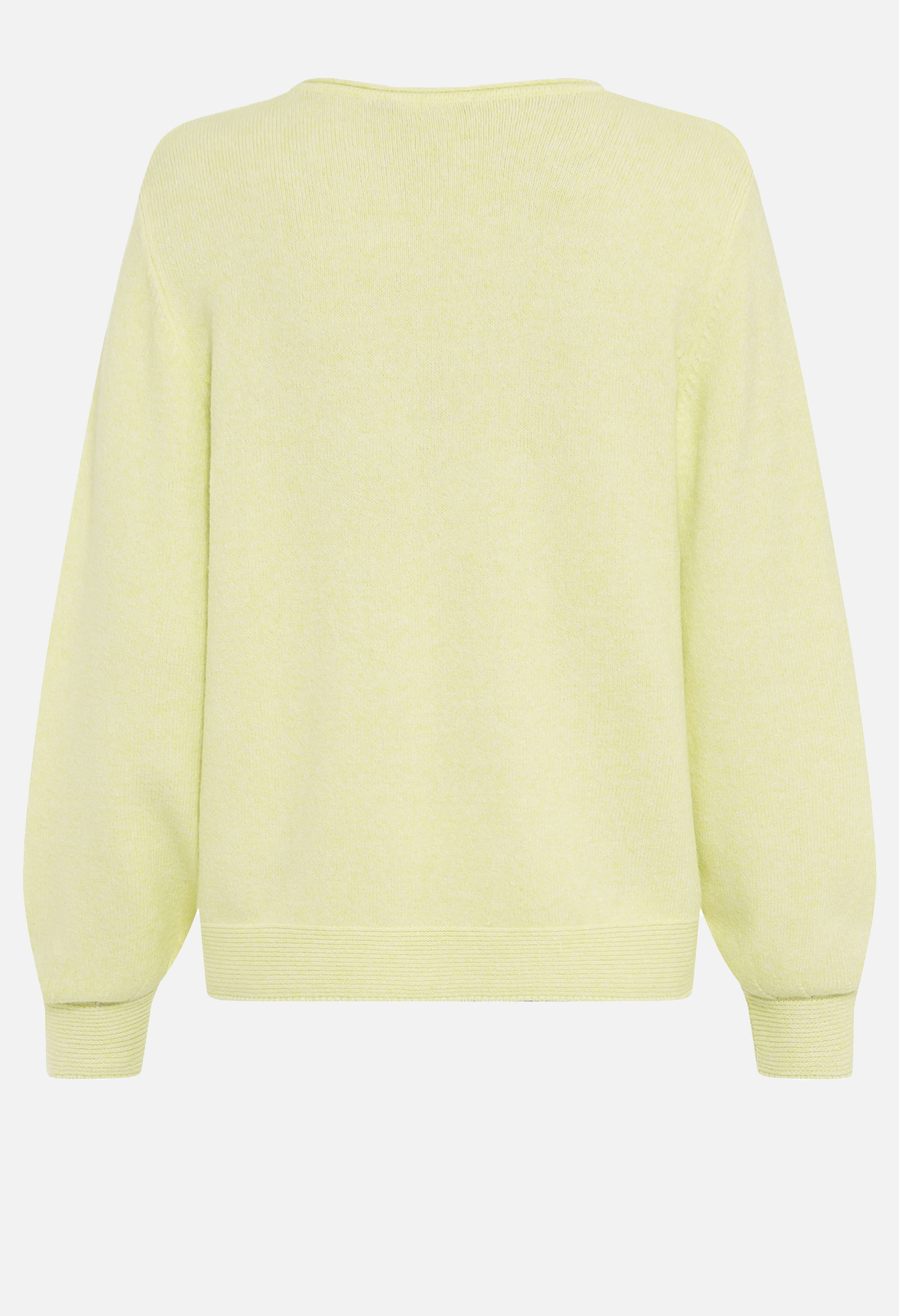 Cвитер из мягкой пряжи с меланжевым эффектом. Низ и манжеты отделаны тонкой ребристой вязкой. Рукава немного шире. Джемпер скроен прямо и слегка прилегает к телу.