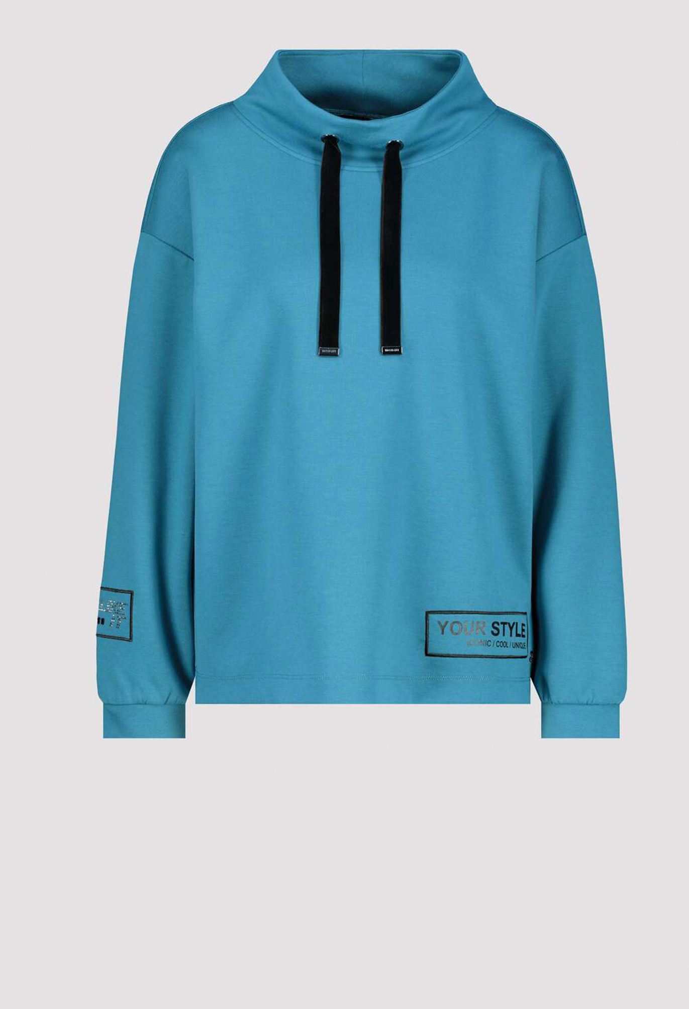 Повседневный свитер с длинными рукавами выполнен из мягкого, приятного на ощупь материала, эластичного и женственного вида. На правом рукаве и спереди модная нашивка с вышивкой и стразами. Длина 44 размера 62 см.