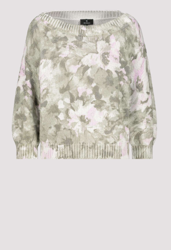 Свитер из 100% хлопка отличается красивым цветочным узором и ребристым вырезом-лодочкой. Регулярная посадка. Перерез на 3/4 руки. Ребристые манжеты и подол. Длина 44 размера 54 см.
