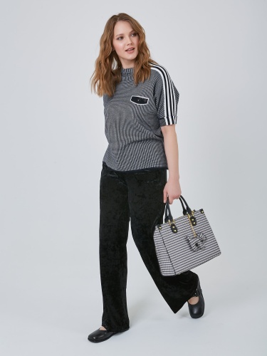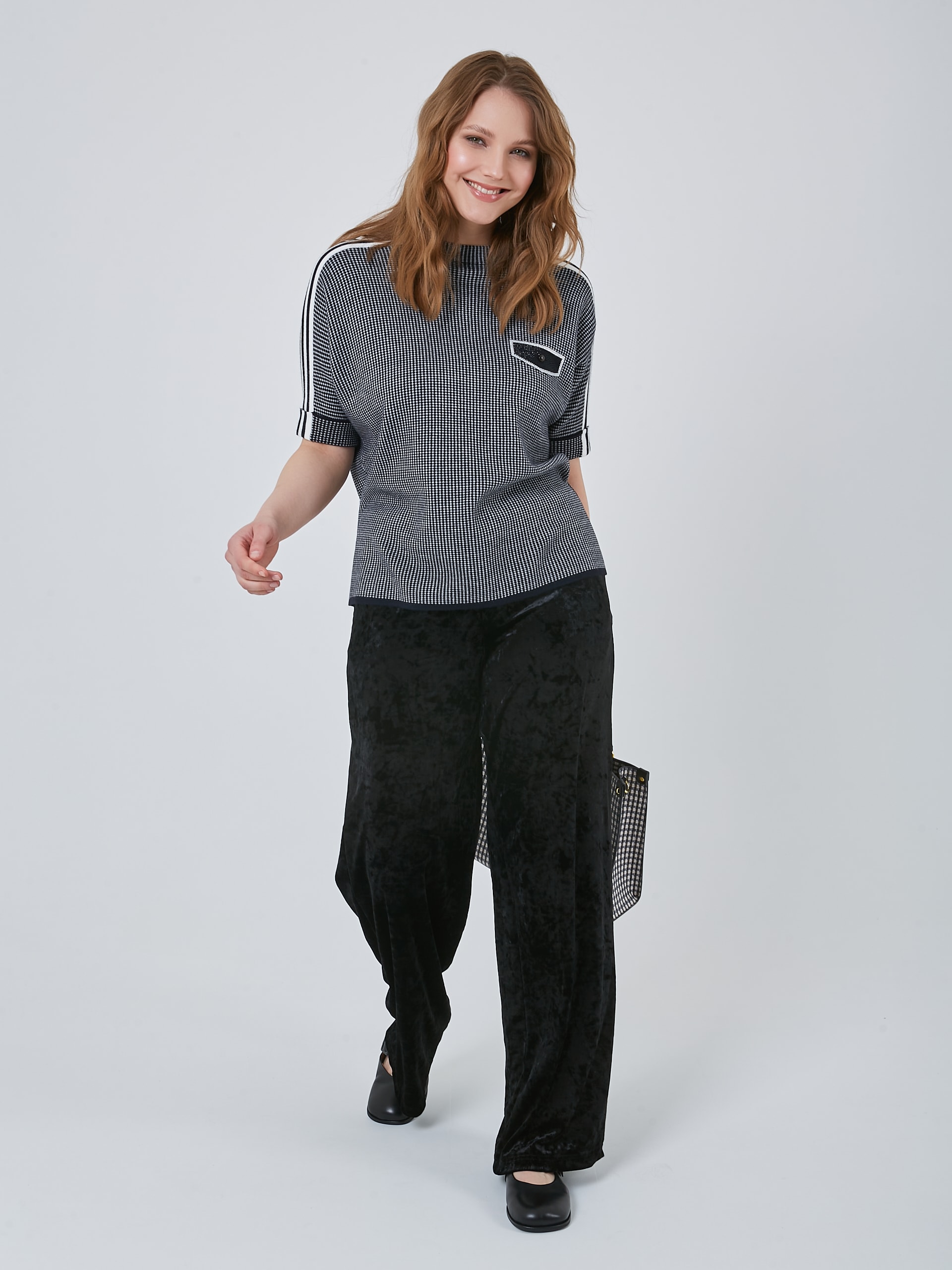 Джемпер в классическом геометрическом принте "гусиная лапка" или пье-де-пуль, лучшее, что можно найти для строгого и в то же время нескучного стиля.Пара красных аксессуаров или просто красная помада - и вы будете выглядеть как гостья с Елисейских полей! Коллекция Осень-Зима 2024 Капсула "Амели"