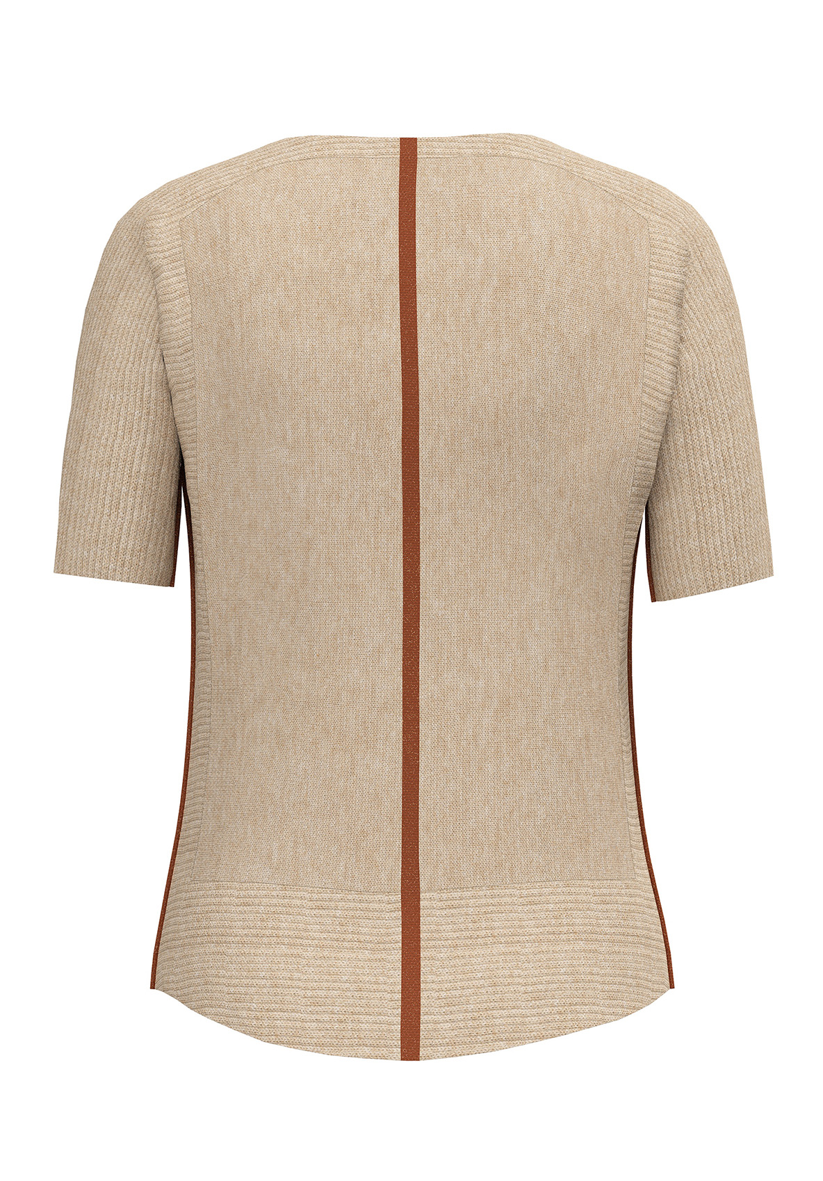 Этот джемпер - шикарный компаньон во множестве образов. Посадка по фигуре, вырез горловины "лодочка", рукава 1/2, закругленная спинка. Этот утонченный по дизайну джемпер имеет множество изысканных элементов. В полотне сочетаются различные типы машинной вязки, а по бокам изделия, на рукавах и на спинке располагаются лампасы, которые имеют ненавязчивый блеск благодаря нити люрекса. Приятный к телу материал из смеси хлопка и лиоцелла обеспечивает комфорт в ношении.