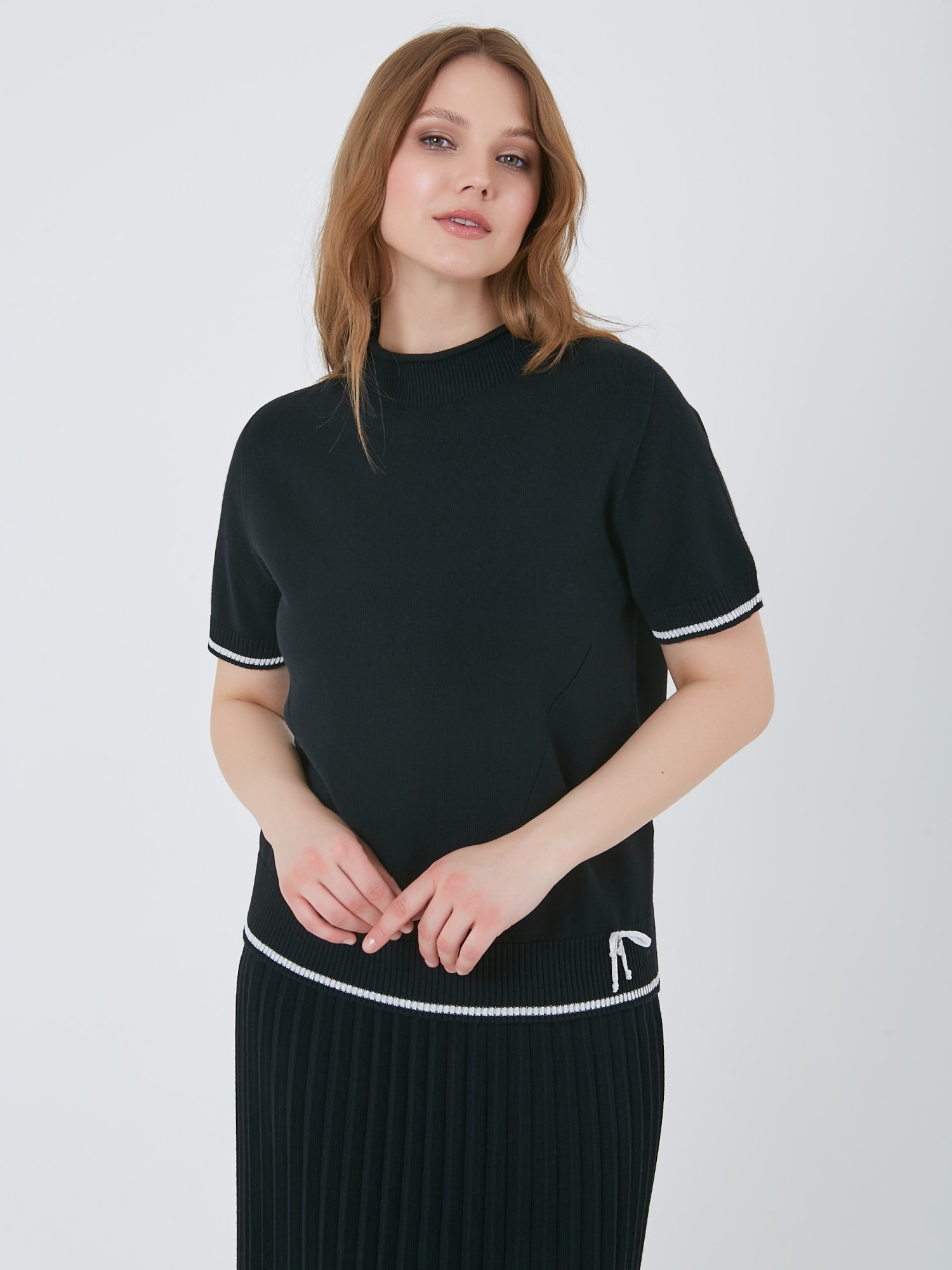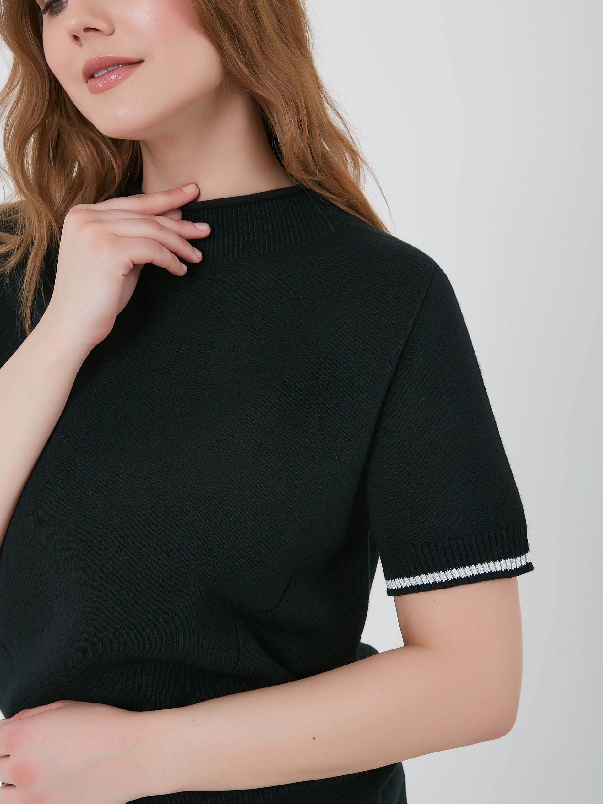 Стильный базовый джемпер с коротким рукавом без швов, связанный в круговую. Коллекция Осень-Зима 2024-2025. Капсула "Амели".