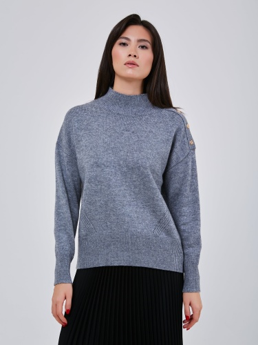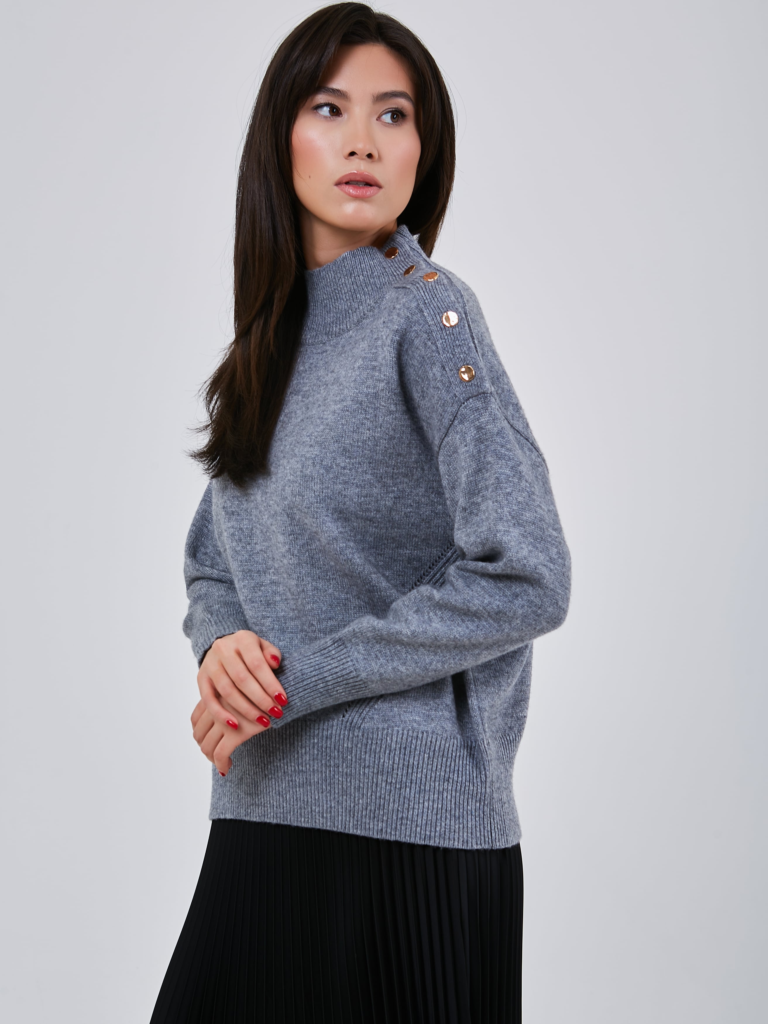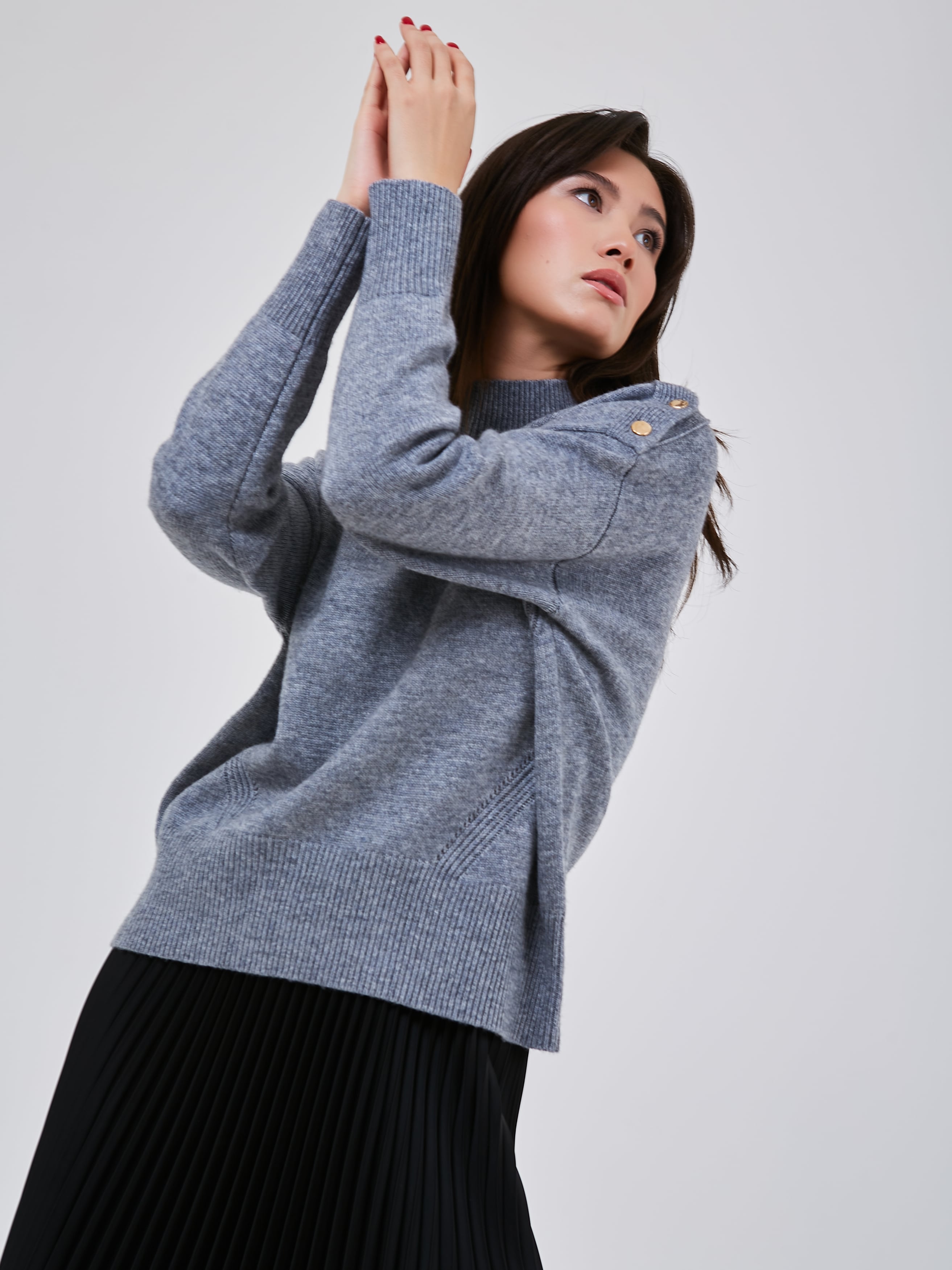 Интересный стильной джемпер с декоративными стальными пуговицами по плечевому шву. Осень-Зима'25/26. Капсула "Вишневый сад"