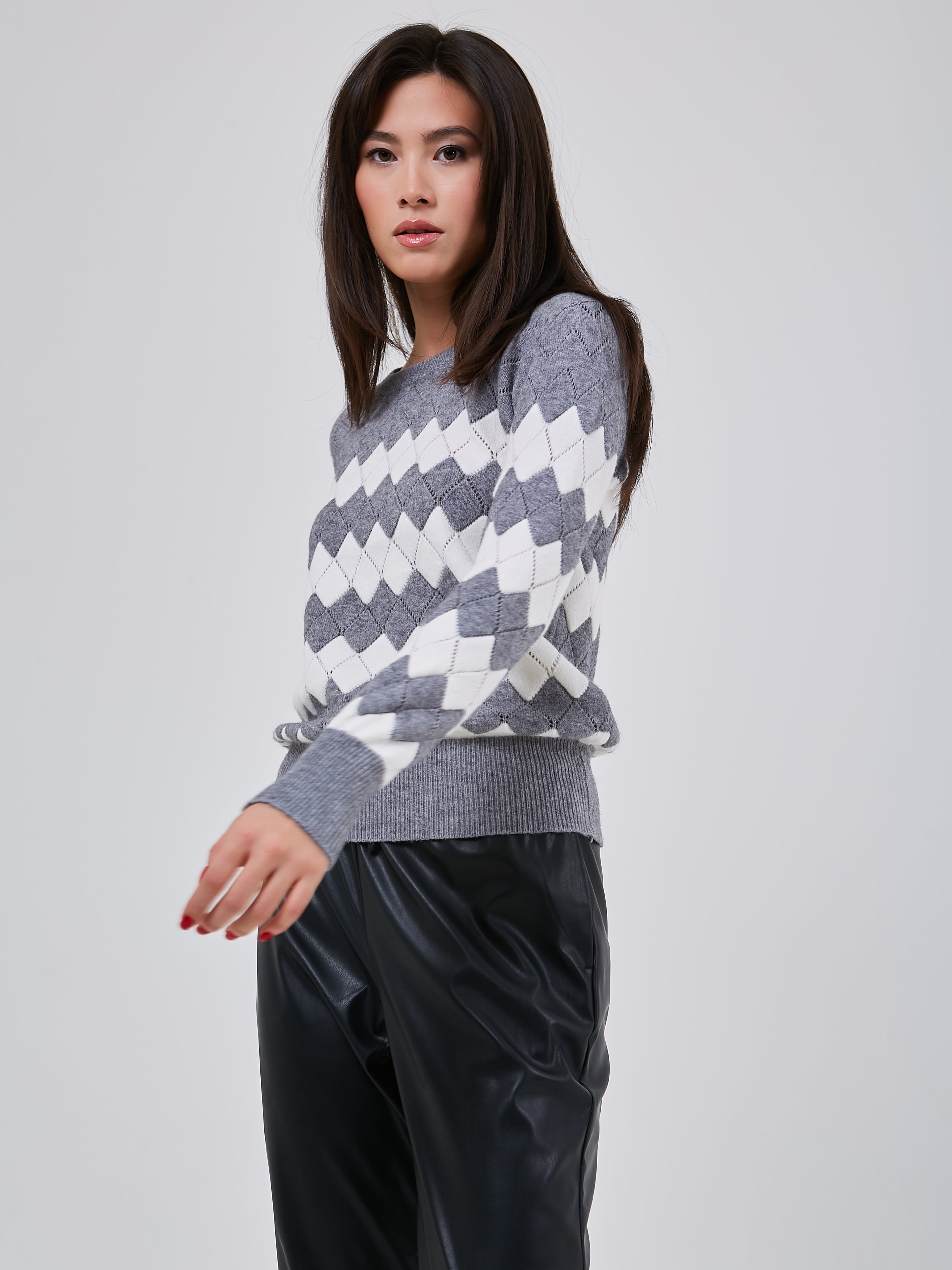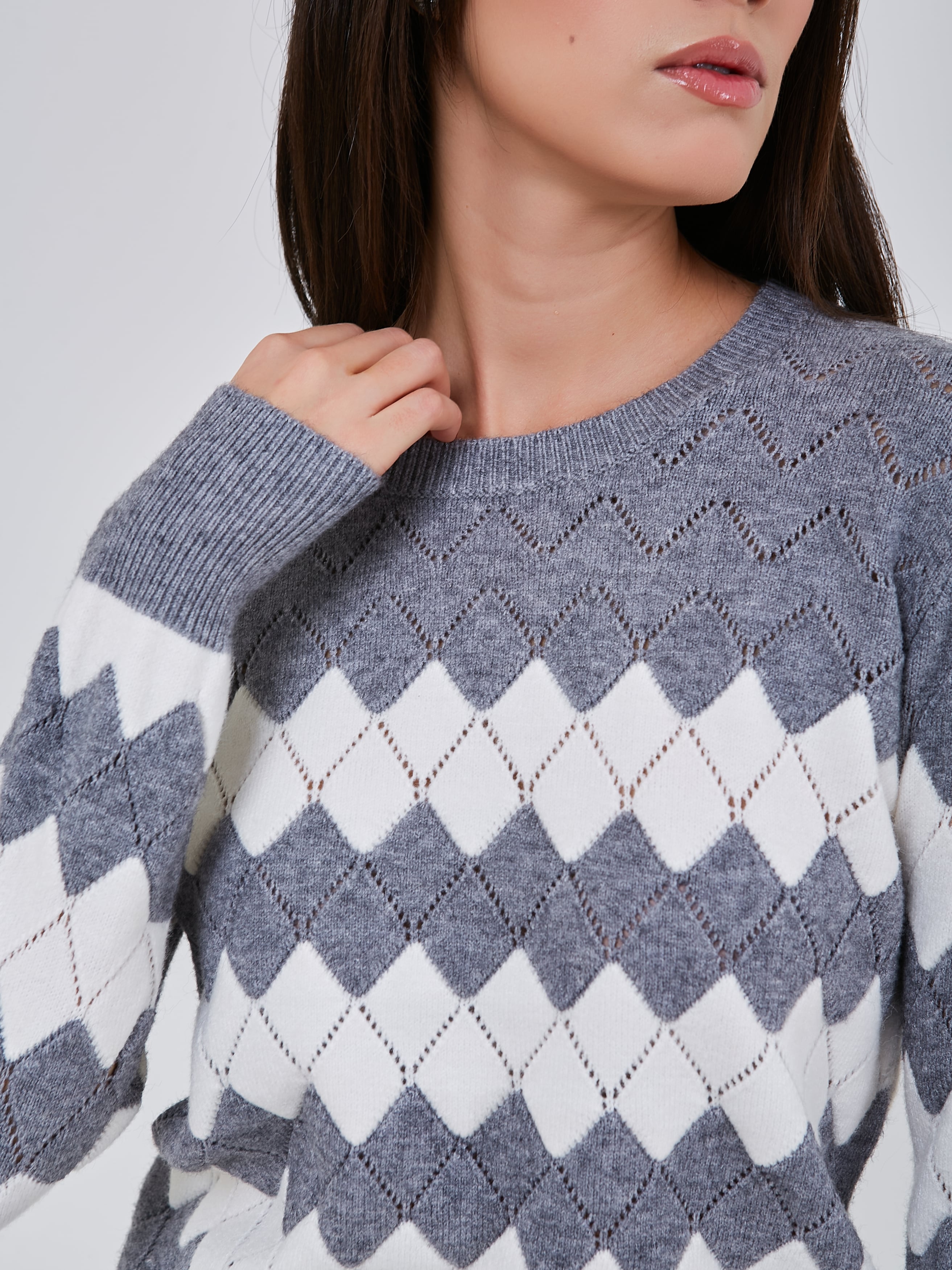 Ажурный свитер с узором в виде ромбов "Аргайл". Коллекция Осень-Зима 2024-2025. Капсула "Гостья из будущего".