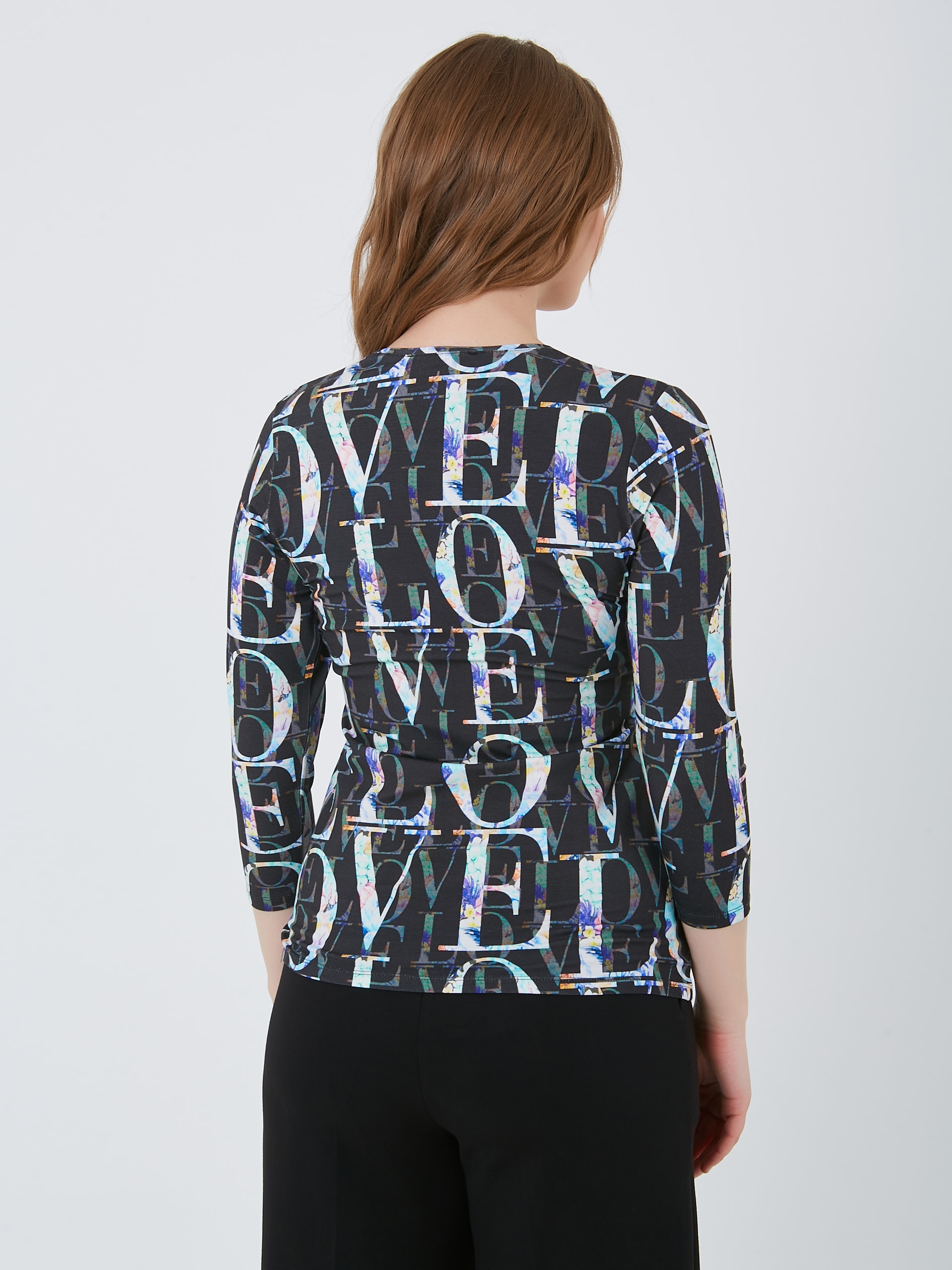 Лонгслив с крупным принтом в виде слова LOVE. Рукав 3/4. Осень-Зима'25/26. Капсула "Малахитовая шкатулка"