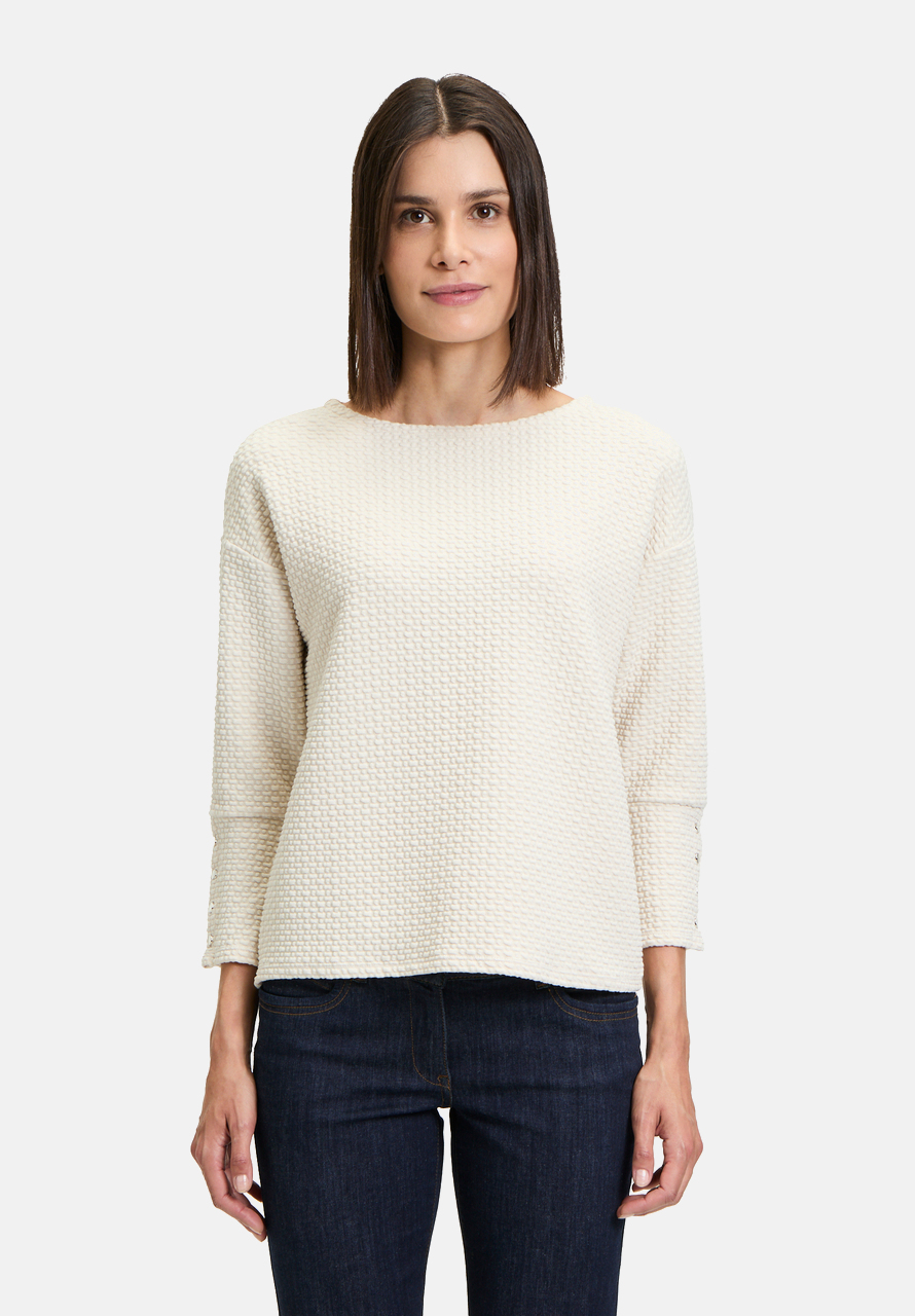 Толстовка с ее женственным и в то же время повседневным дизайном может быстро стать вашей новой любимой вещью. Свободный крой и вырез-лодочка придают изделию современный вид, а рукава 3/4 со спущенными рукавами создают непринужденный образ. Идеально подходит для создания повседневного, но стильного образа