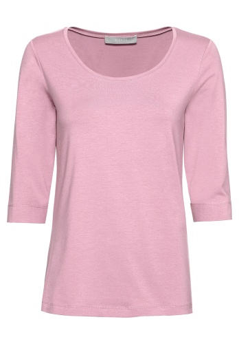 Простая футболка прямого покроя - обязательный элемент базового гардероба. Приятный к телу материал из смеси хлопка, модала и эластана обеспечит комфорт и идеальную посадку. Рукав 2/3 и широкая круглая горловина придают модели непринужденный вид. Эта футболка подходит как для офиса, так и для прогулки.