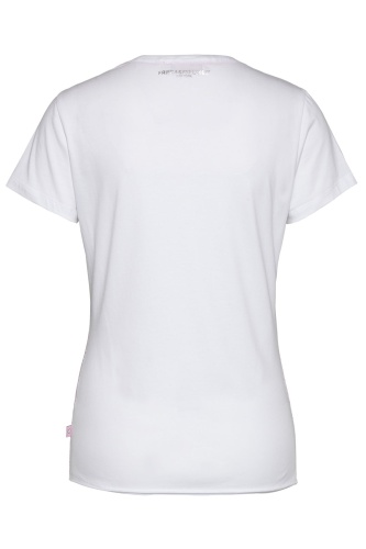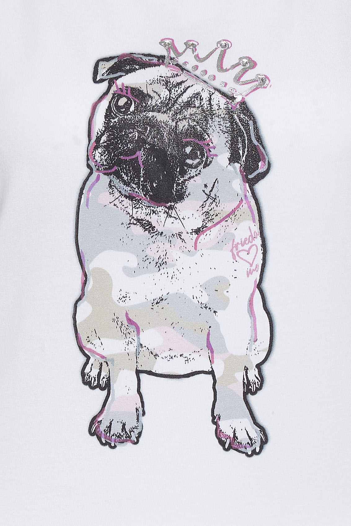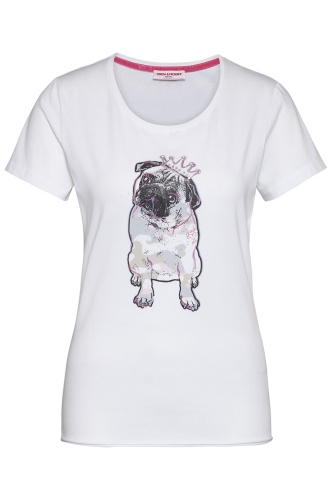 Слегка приталенная футболка с милым принтом. Модель прекрасно сочетается как с брюками, так и с юбкой и идеально подходит нежным особам.
