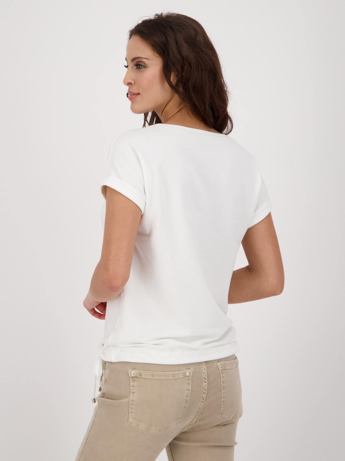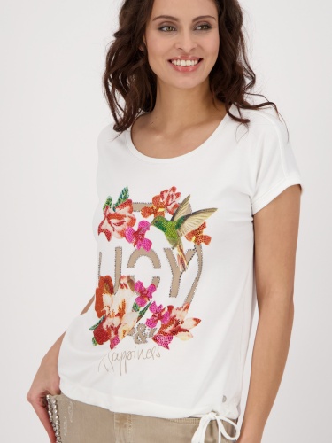 На сайте указаны Российские размеры. Футболка с принтом в стиле кэжуал, идеально дополнит повседневный образ. Короткий сплошной рукав, овальный вырез горловины, кулиска по низу изделия.