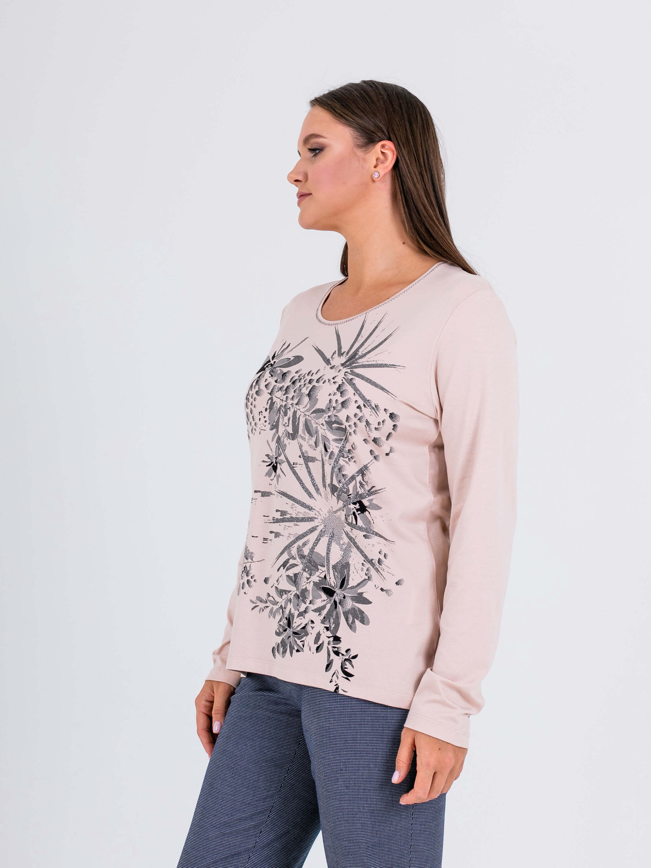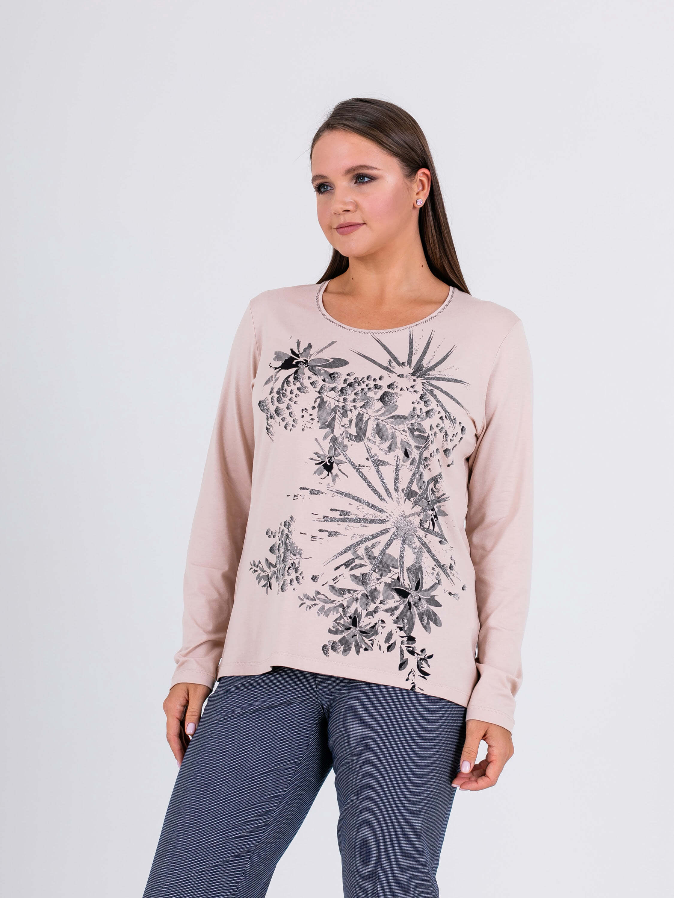 На сайте указаны российские размеры. Ткань: 92% вискоза, 8% эластан. Крой: классическая удлиненная модель свободного силуэта с длинными рукавами и круглым горлом. Приятный гладкий материал позволяет телу дышать, а вам ощущать комфорт и тепло. Универсальная модель, подходящая женщинам с разным типом фигур. Отделка: сочетание нежного розового и серого – одно из самых удачных и актуальных. Вырез джемпера украшает контрастный зигзаг, который приковывает внимание к деталям. В ассортименте Stern вы найдете десятки вариантов для создания ярких образов с этим джемпером. Загляните в разделы брюк, юбок и джинсов на нашем сайте.