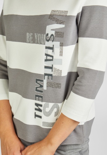 Толстовка с модными рукавами 3/4 украшена блестящими деталями, которые придают вашему образу особую индивидуальность. Длина спинки от плеча для 44 размера: 62 см.