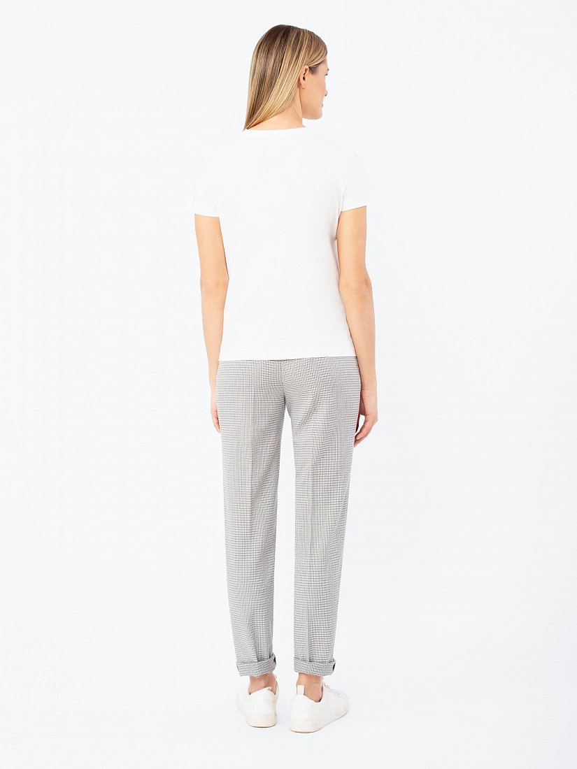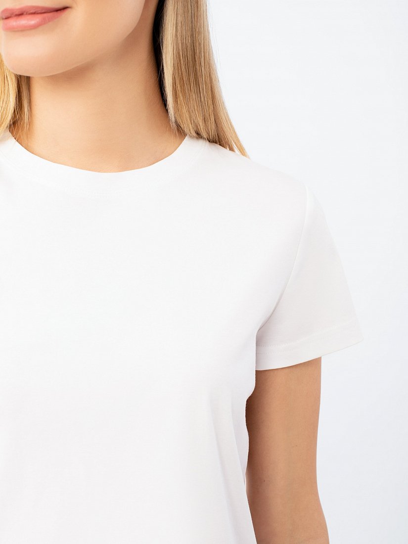 Базовая белая футболка полуприлегающего силуэта из мерсеризованного хлопка. Короткий втачной рукав, круглый вырез горловины.