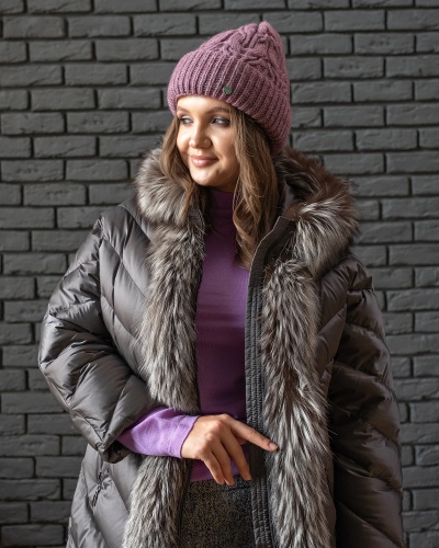 Шапка-бини с узором из кос отлично сочетается как с курткой, так и с пальто классического кроя. Изюминка модели - аккуратный металлический лейбл STERN. Модель универсальна и украсит любой овал лица. Теплая и приятная смесовая пряжа.