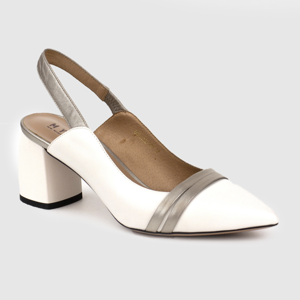 Элегантные туфли из натуральной кожи. Открытая пятка, заостренный нос. Высота каблука: 6. Универсальная расцветка дополнит образы различных стилей.