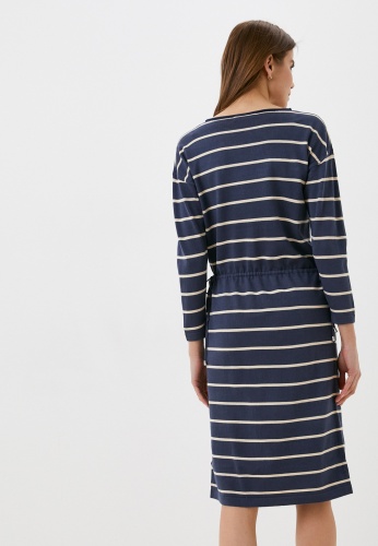 На сайте указаны Российские размеры. Платье длины миди в полоску станет частью повседневного городского образа. Материал из смеси вискозы и нейлона приятен к телу и обеспечивает комфортное ношение. Кулиска на талии. Овальный вырез горловины. Втачной рукав полной длины.