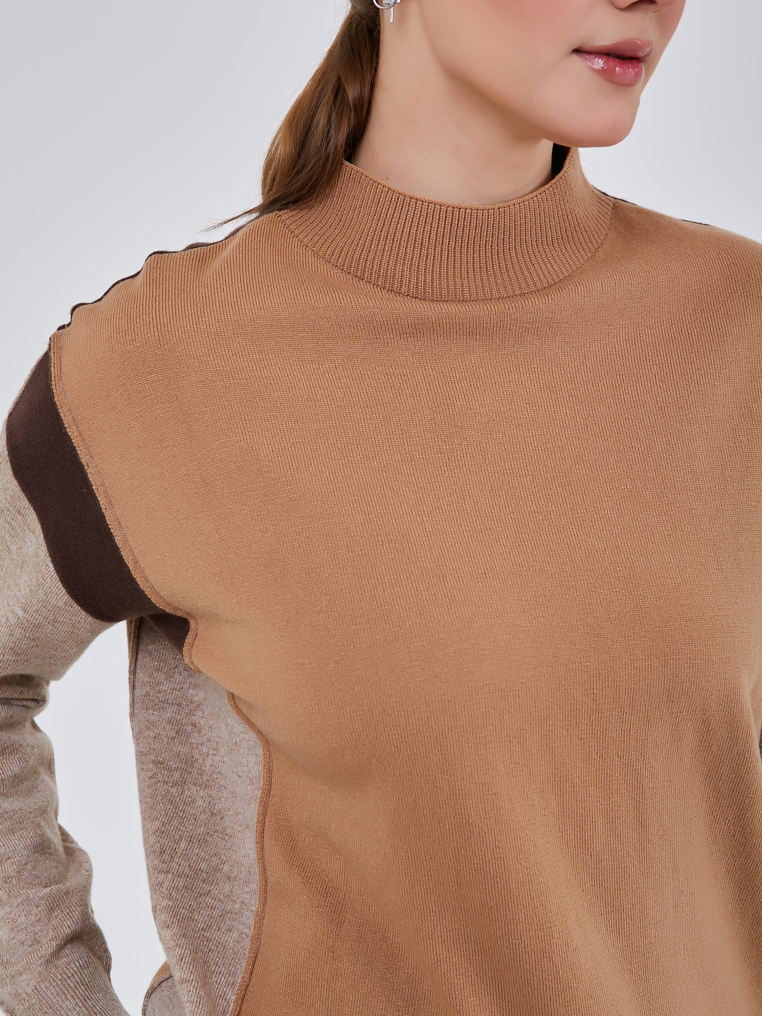 Джемпер с ассиметричным цветовым решением. Воротник- стойка эластичной вязки.Осень-Зима'25/26. Капсула "Вино из одуванчиков"