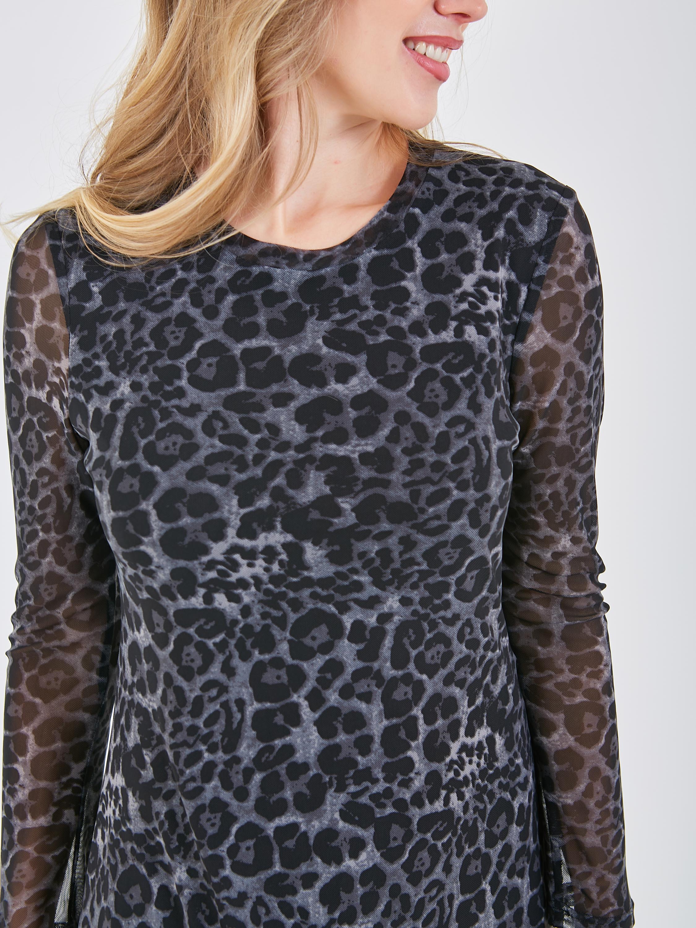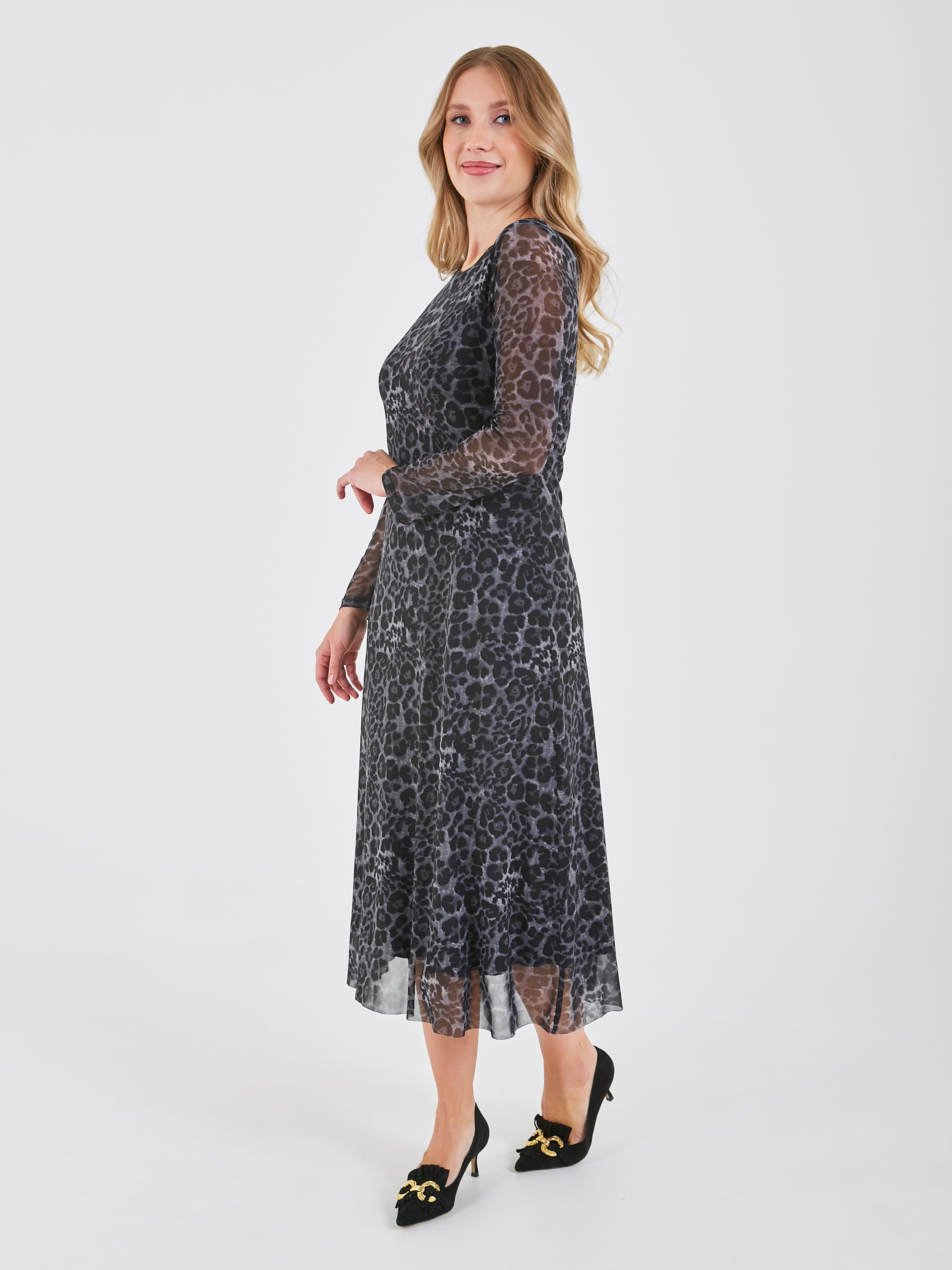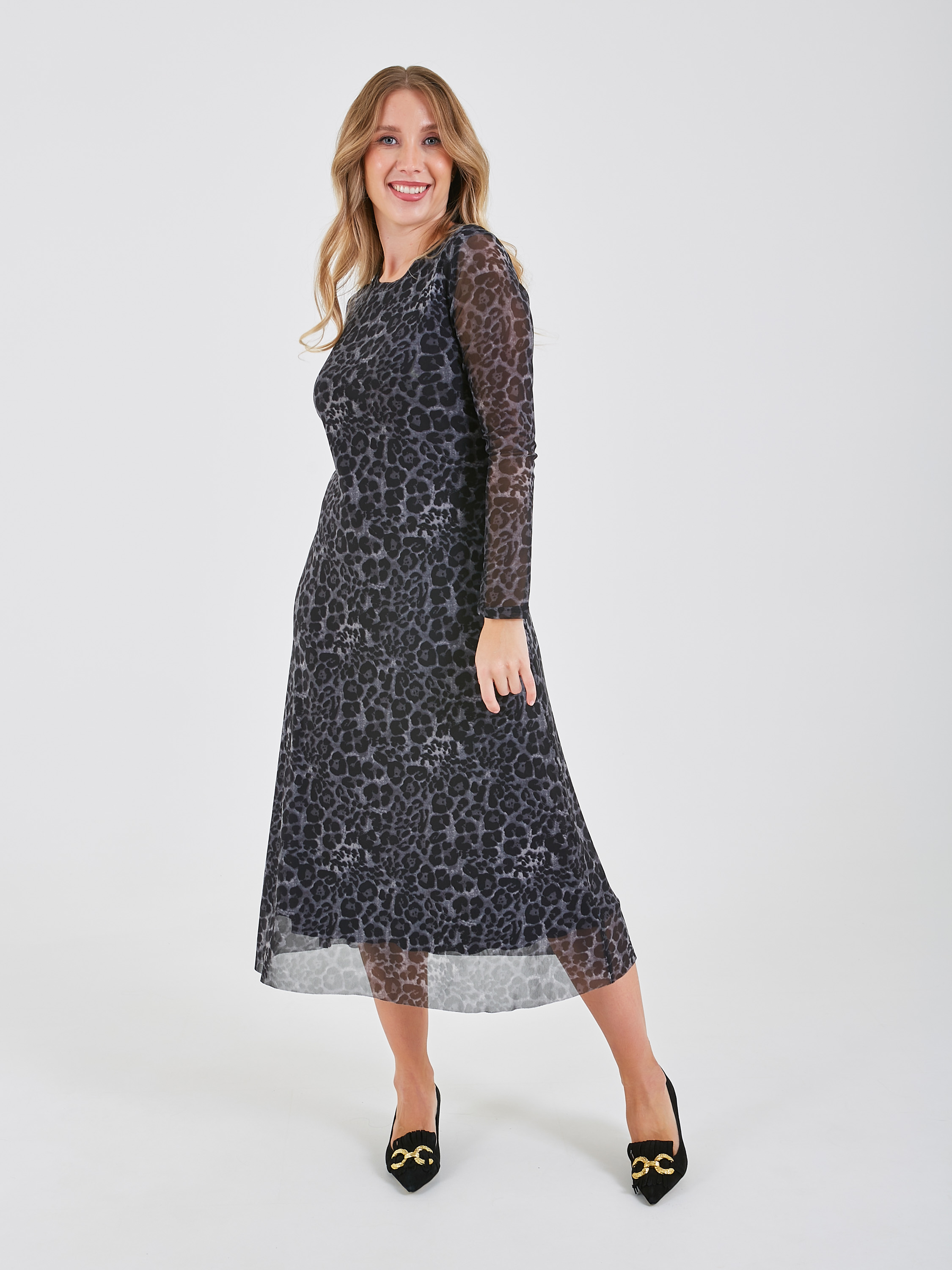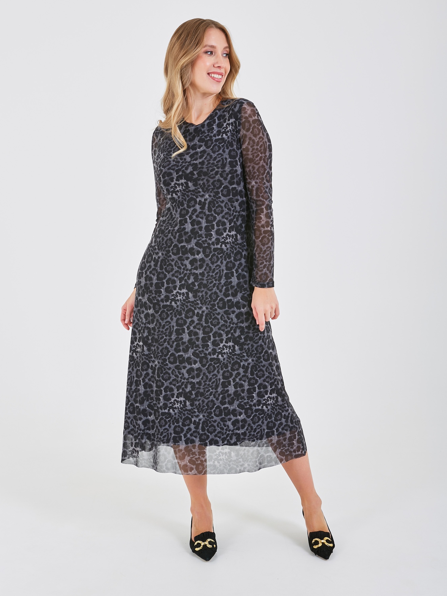 Женственное платье сетка с дымчатым принтом. Полупрозрачная фактура передаёт лёгкость и изящество модели. Коллекция Осень-Зима 2024-2025. Капсула "Гостья из будущего".