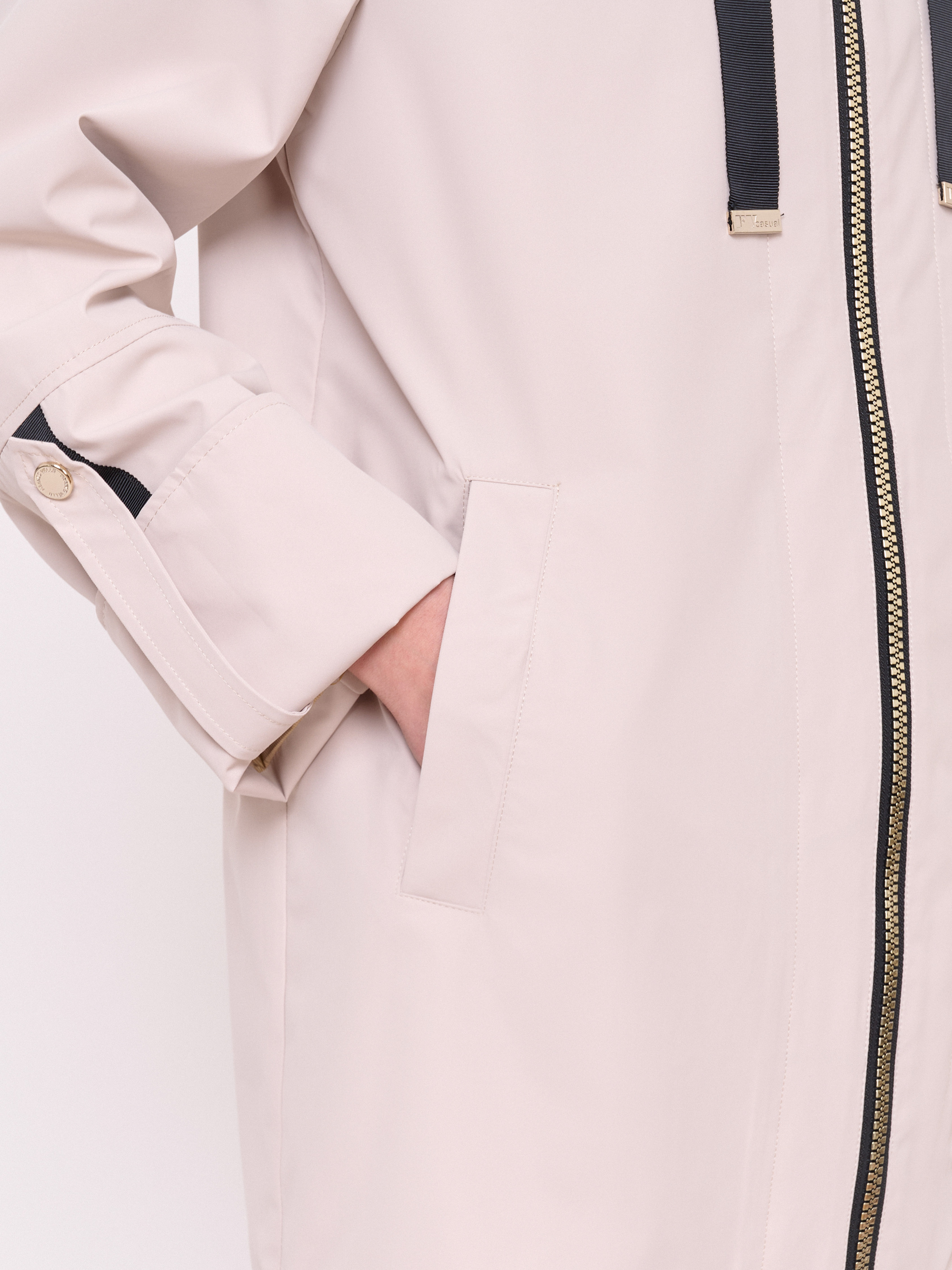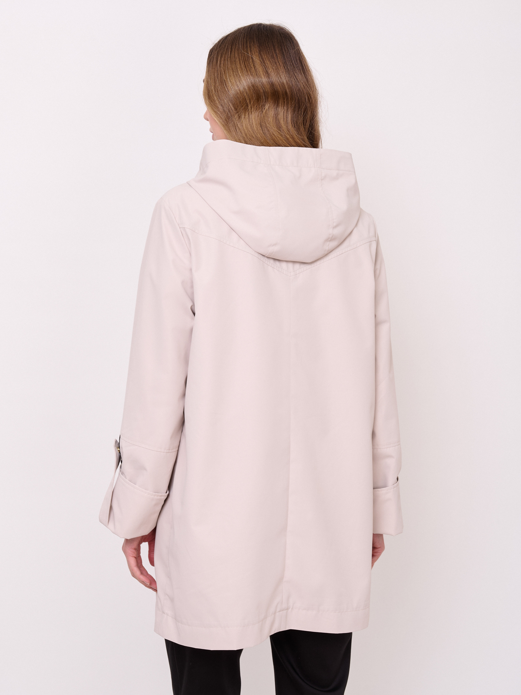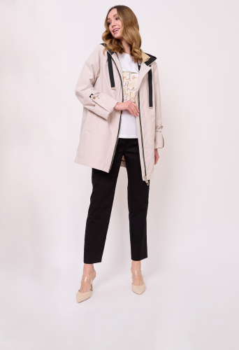 Застежка молния, несъемный капюшон с кулиской, рукава длинные с отворотами и хлястикамина кнопке, покрой прямой, без рисунка, без утепления, карманы прорезные, плотность утеплителя 0,01, без опушки, борты однобортное.